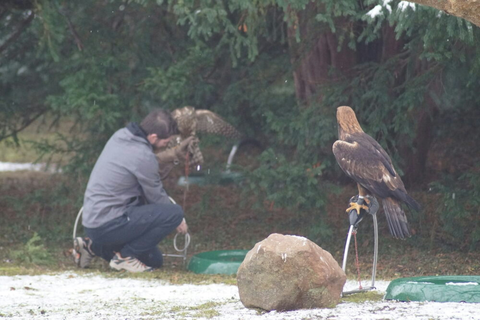 Einen Adler und einen kleineren Greifvogel brachte der Burgbewohner ins Freie.