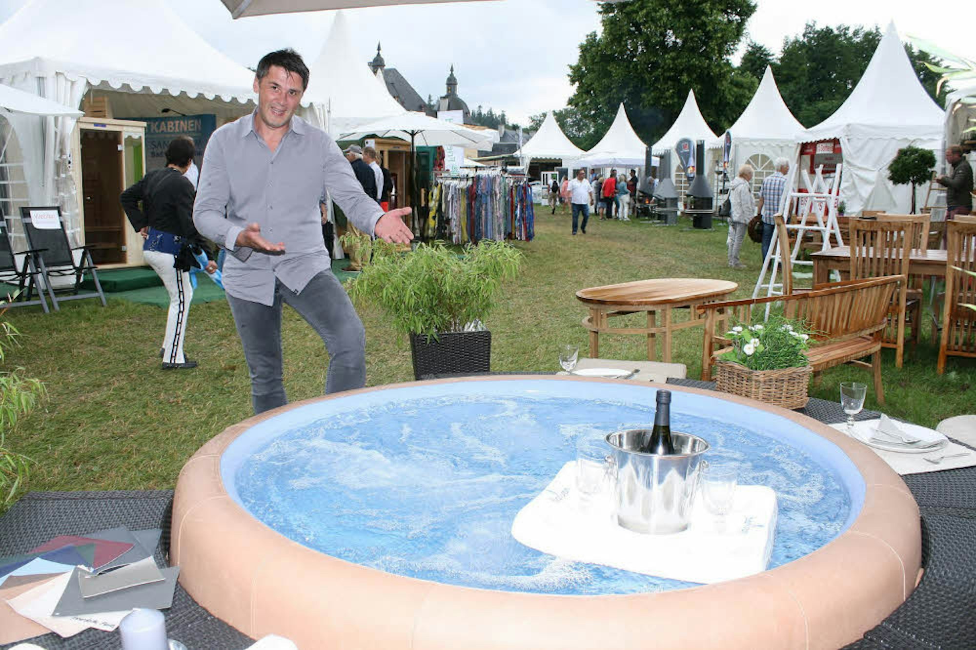 Das Kleine, das Spezielle – oder doch das Standesgemäße für den repräsentativen Relax-Garten interessiert die Besucher in Eicks. Letzteres blubbert am Stand von Justa Diegan aus Achim bei Bremen: Whirlpools für draußen.