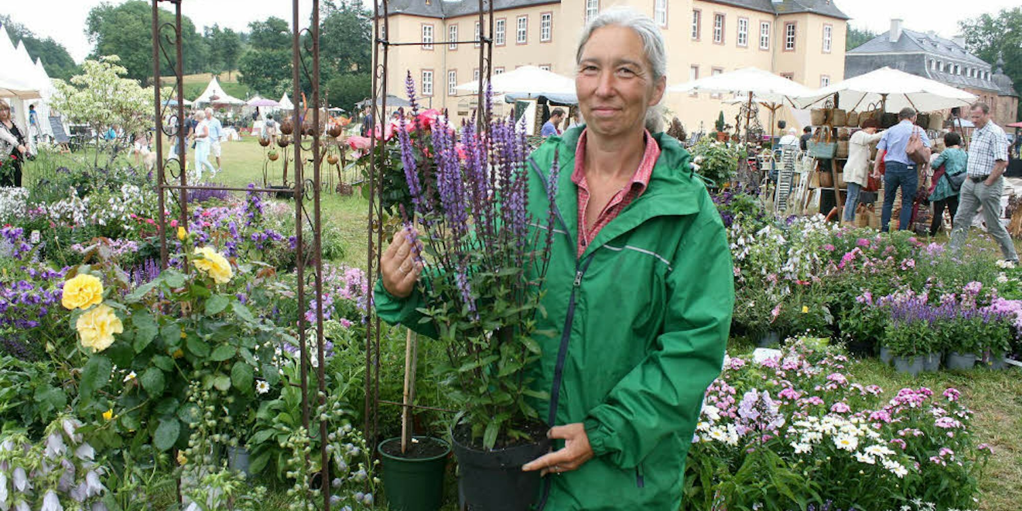 Und Regen hin oder her: Der Gartenfreund interessiert sich rund ums Schloss für die passenden Outdoor-Möbel, ob aus Massivholz, Rattan, Mischgewebe, für Strandkörbe, für Dekoratives, für Blühendes – und für Kulinarisches in allen Varianten. Elsässer Flammkuchen sind genauso im Angebot wie Wildspezialitäten von den „Almburschen“, Cocktails oder besonders geschmacksintensive Riesentomaten.
