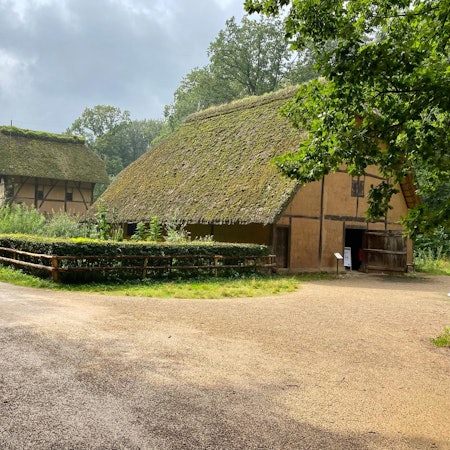 Sebastian Strack und Nadine Behnke stehen in ihrem Fachwerkhaus am Bleibach.
