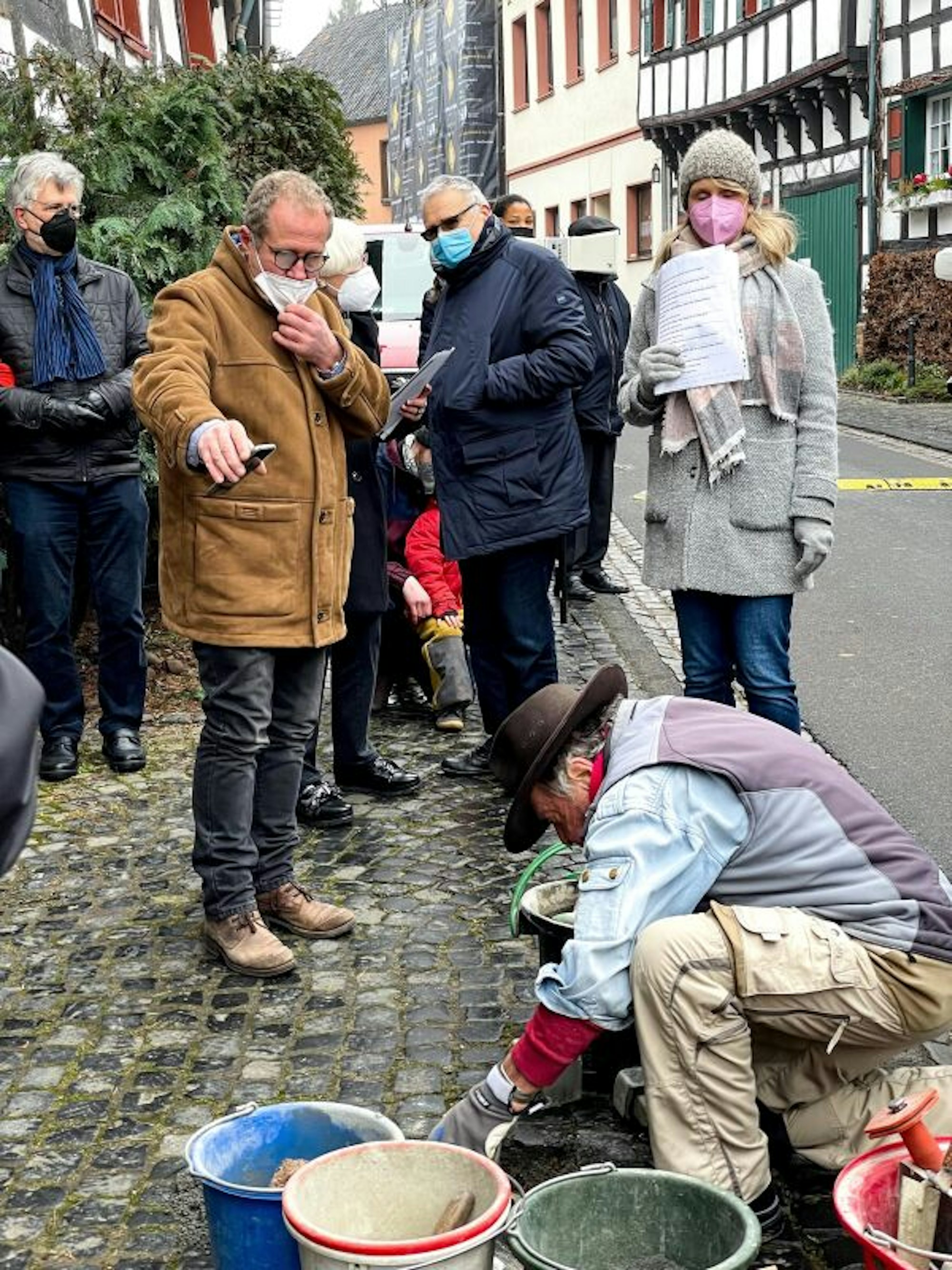 Künstler Gunter Demnig verlegte in Kommern an der Mühlengasse für die jüdische Familie Lewin vier Stolpersteine.