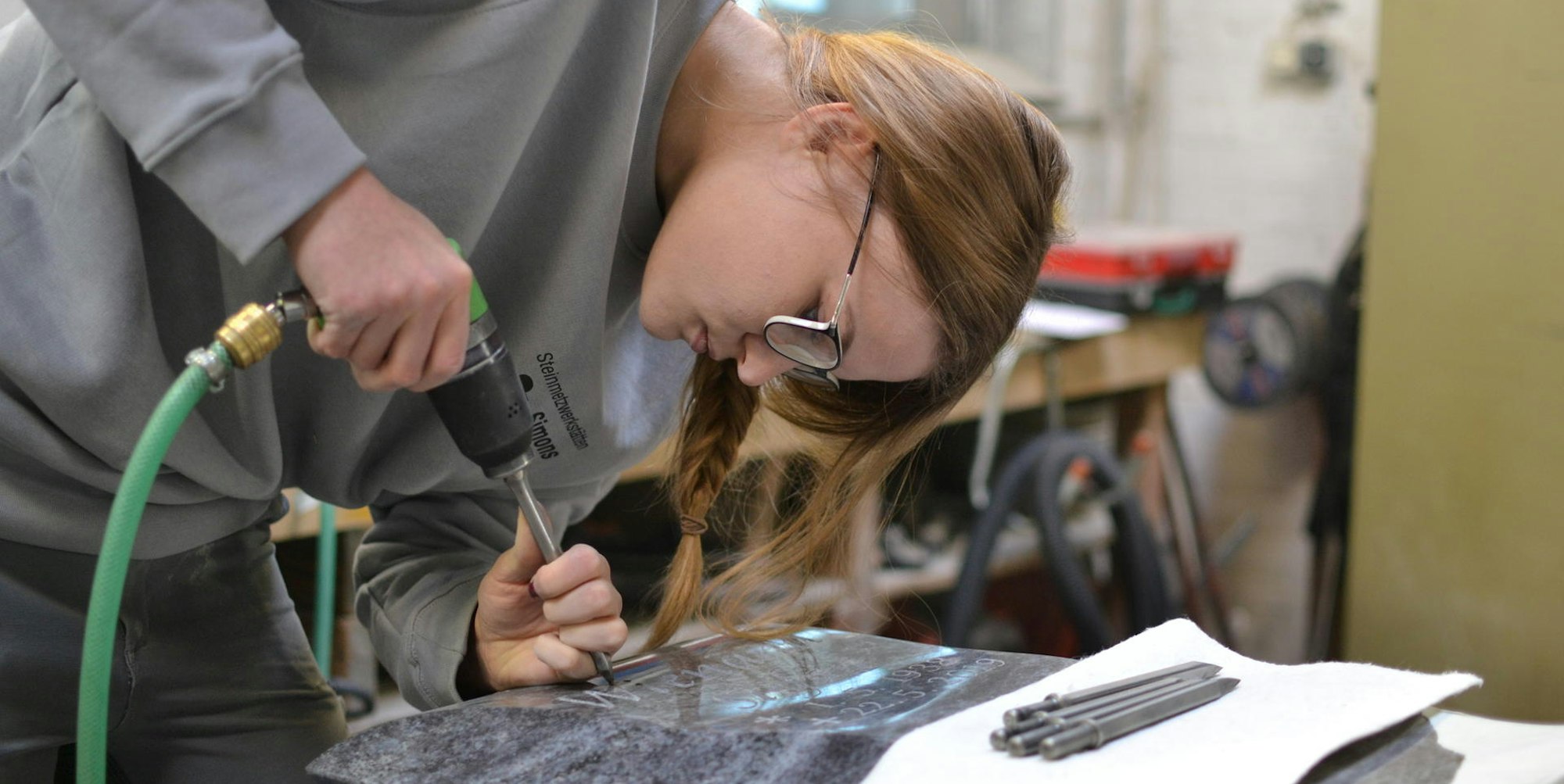 Im Betrieb vom UropaMechernicherin schmiss Studium, um Steinmetzin zu werden