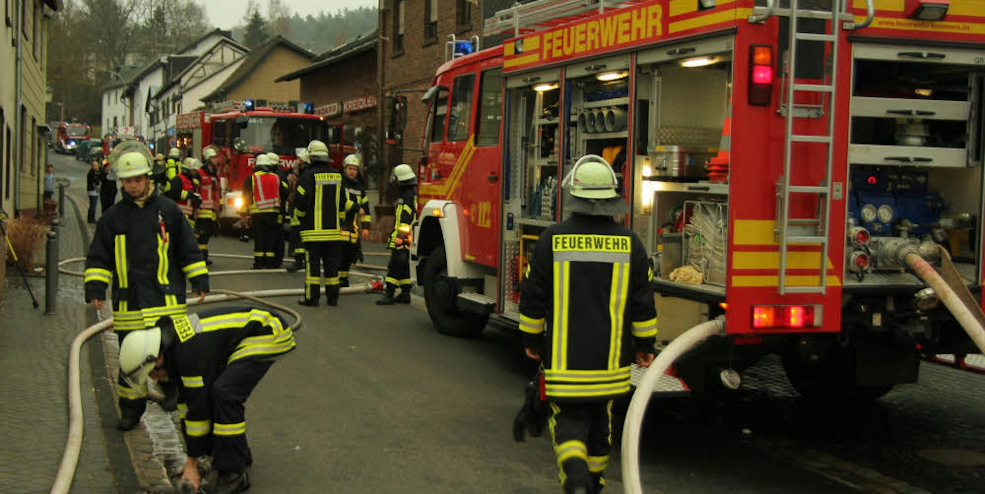 Wenn es brennt, sind sie zur Stelle: die ehrenamtlichen Feuerwehrleute der Stadt Mechernich, hier bei einem Brandeinsatz in der Gielsgasse in Kommern.
