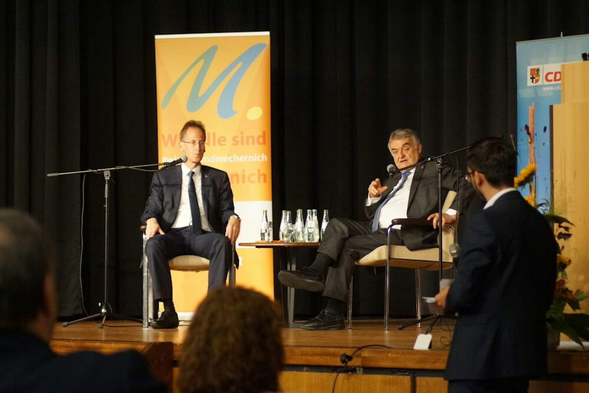 Reul war zu Gast bei einer Diskussionsrunde im Gymnasium am Turmhof. Mit den Anwesenden und CDU-Bundestagskandidat Detlef Seif hat er über Innere Sicherheit gesprochen – und darüber, was er von der Gesellschaft erwartet.