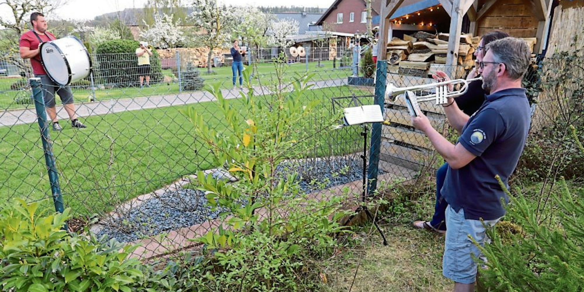 Jeder in seinem eigenen Garten: Der Musikverein Eicks spielte am Wochenende ein besonderes Garten-Konzert. Nächsten Sonntag soll es weitergehen.