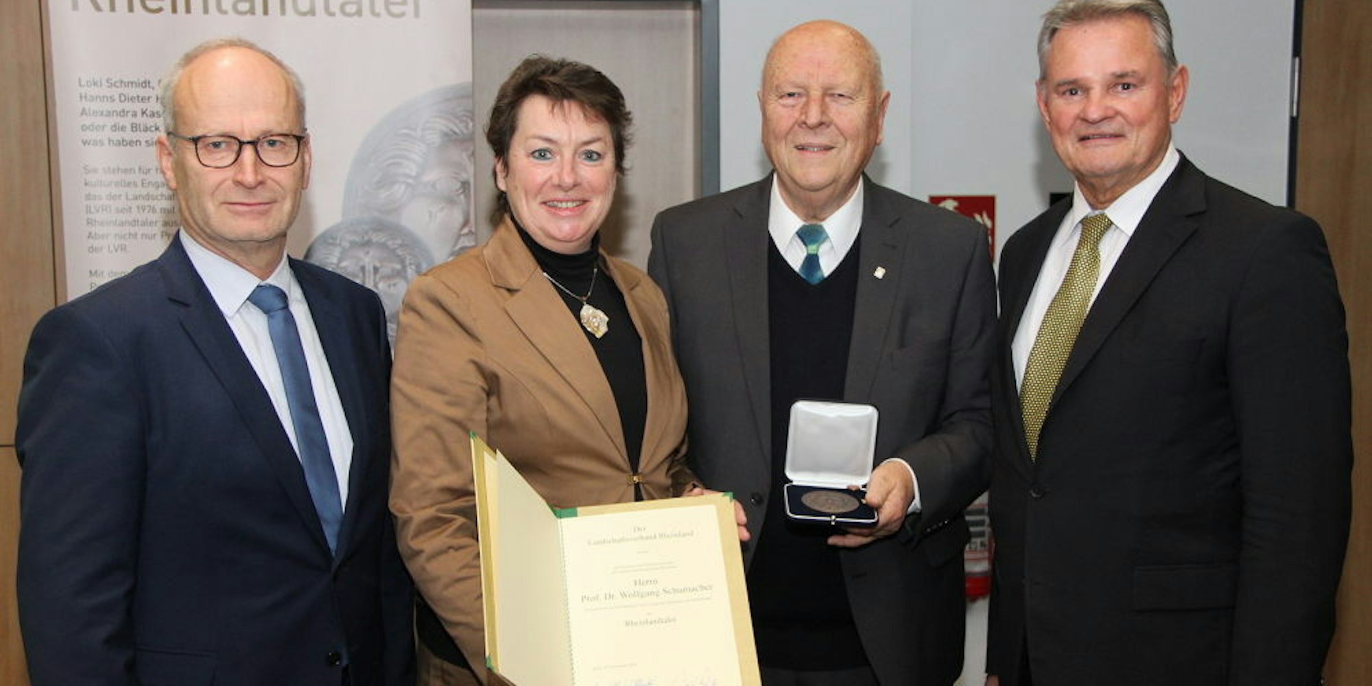 Gratulierten Professor Dr. Wolfgang Schumacher (2.v.r.) zum Rheinlandtaler: Dr. Hans-Peter Schick (v.l.), Anne Henk-Hollstein und Günter Rosenke.