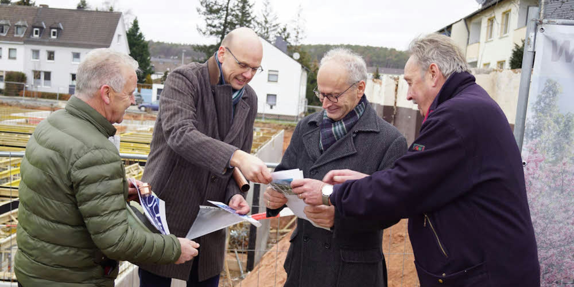 Grundsteinlegung: GEBIG-Chef Oliver Schmitz (2.v.l.) und Bürgermeister Dr. Hans-Peter Schick (3.v.l.).
