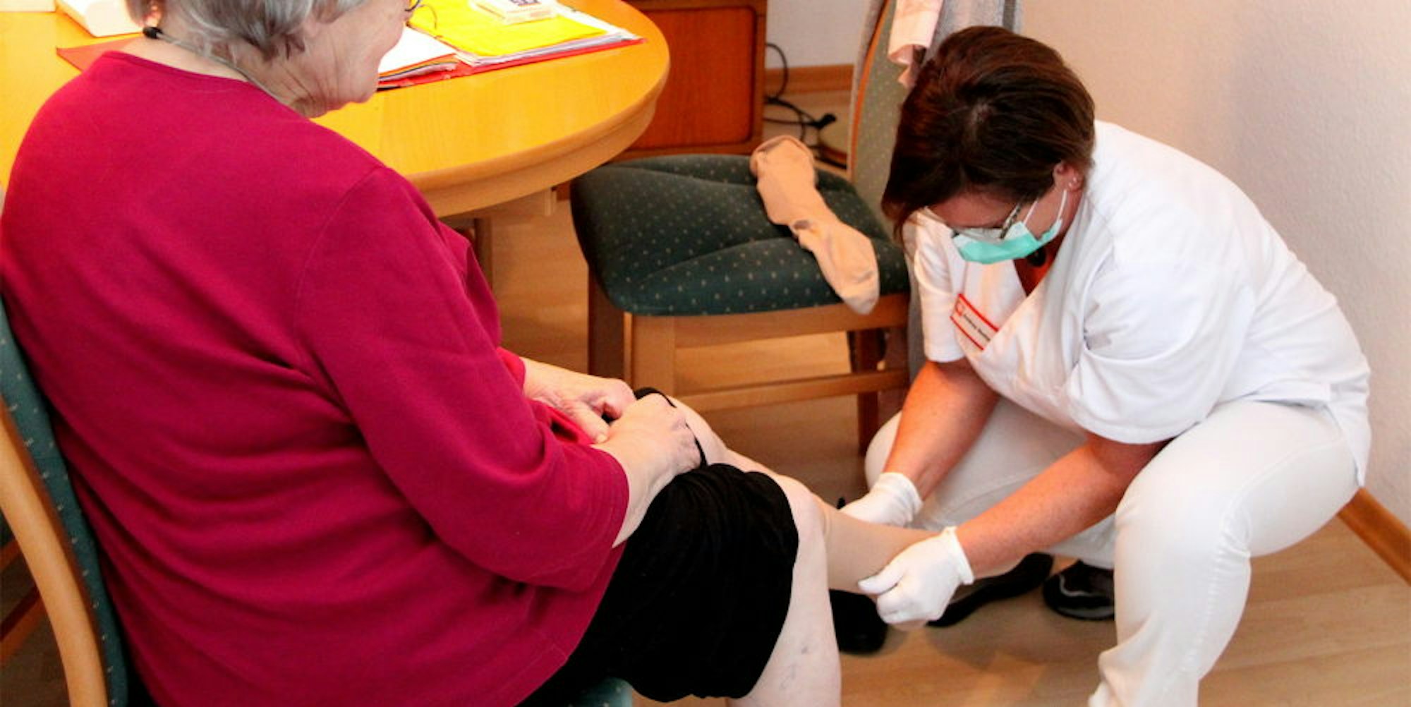 - Sicherheitsabstand ist bei dem Wechseln von Kompressionsstrümpfen oder dem Blutdruckmessen einfach nicht möglich.