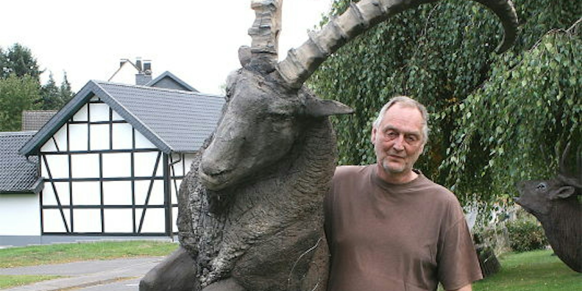Mechernich-Lückerath – Steinbock, Riesen-Tarantel, ein Dinosaurier oder der röhrende Rothirsch, zwei Geier, davor ein Elchkalb oder auch ein Nashorn: Dieser bunte Zoo steht in Lückerath im Garten und der Werkstatt von Wolfgang Herbst. Der gebürtige Kölner gestaltet aus PE-Hartschaum alle nur denkbaren Tierfiguren. Im Januar ist er mit seiner Familie von Zülpich nach Lückerath gezogen. Dort hat er für seine Profession einfach mehr Platz.