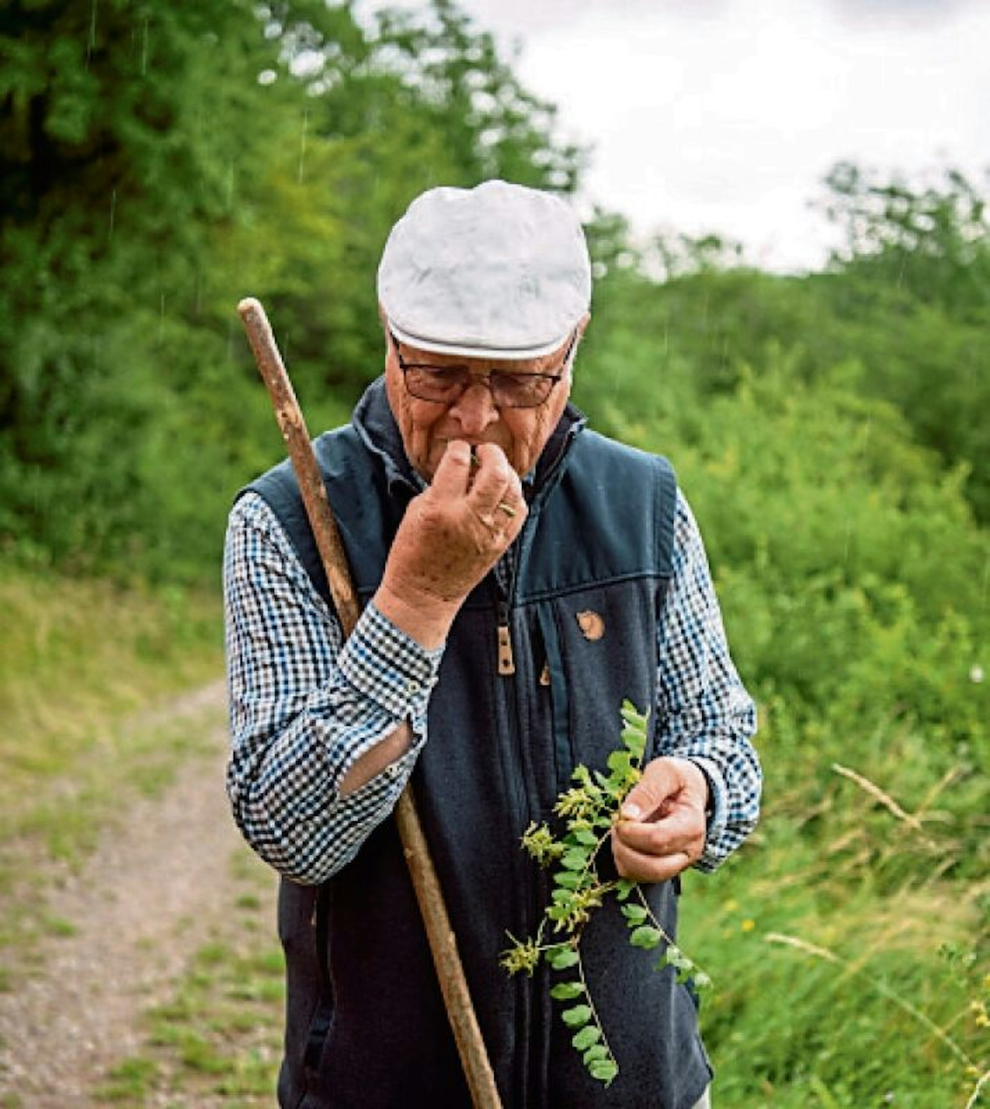 Schumacher und das Ehepaar Knauff folgen nun dem Weg gegenüber des Kreuzes in Richtung Eulenkopf. Dass es dabei zu regnen beginnt, stört sie nicht. Immer wieder entdeckt Schumacher interessante Botanik am Wegesrand. So zum Beispiel die schwarze Platterbse.