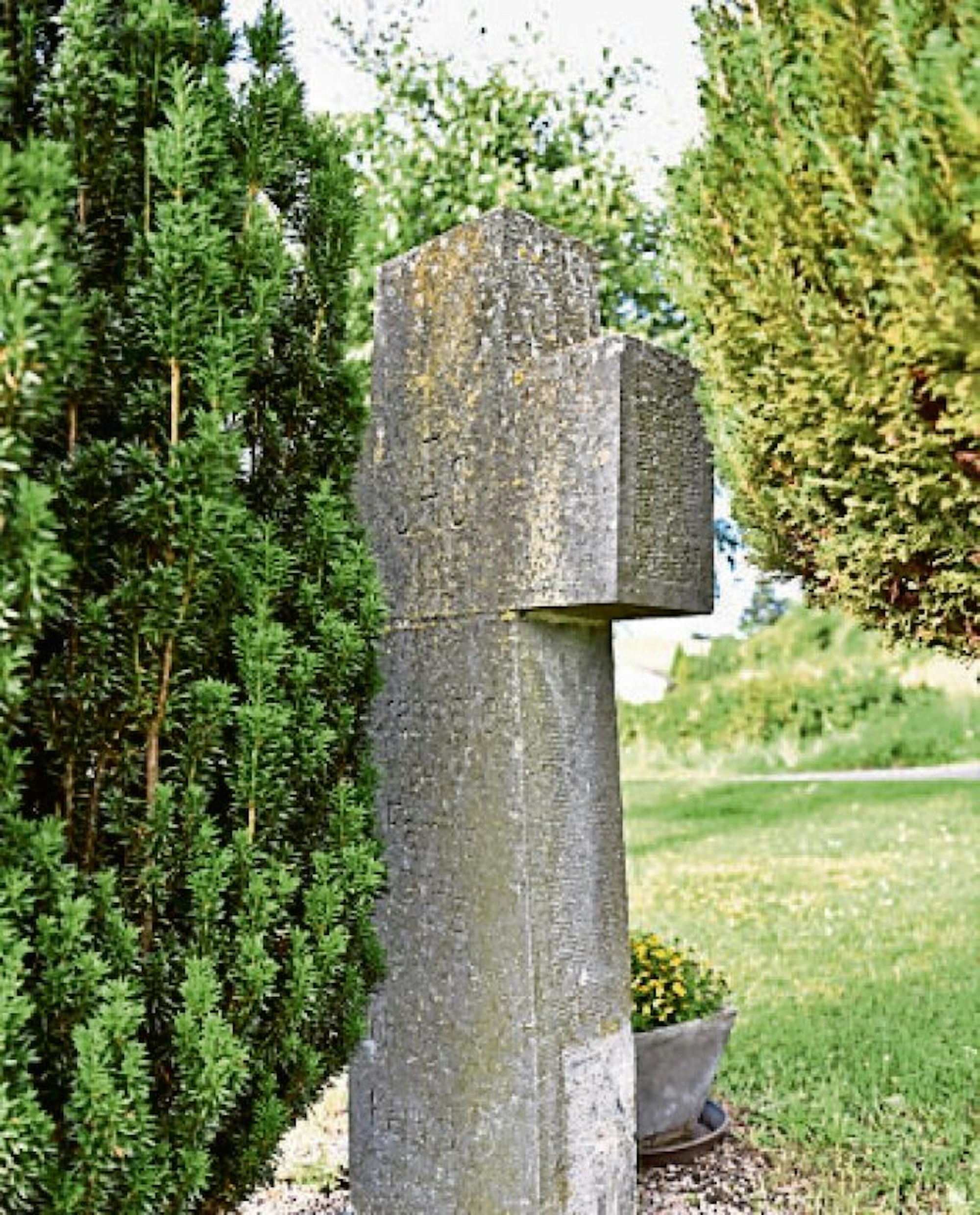 Auf der Rückseite des Wegekreuzes gibt es eine Grabinschrift.