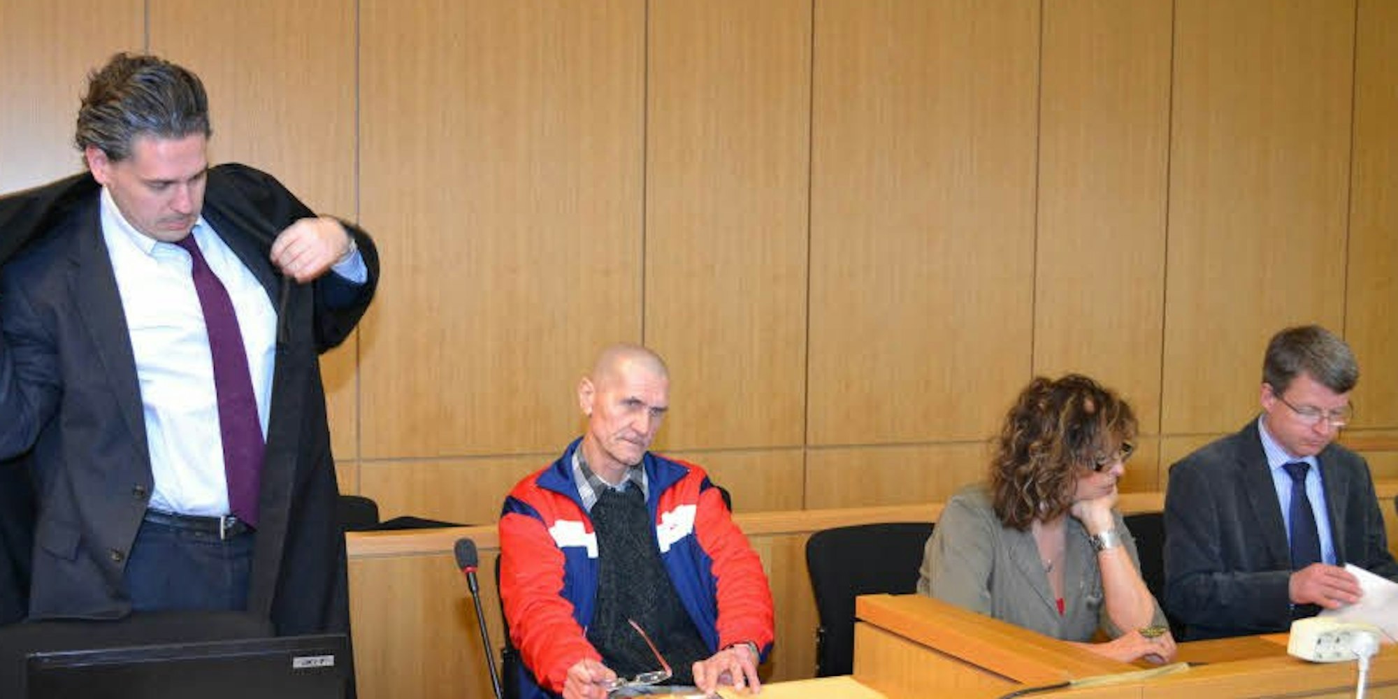 Kall/Aachen – Eine gänzlich unerwartete Entwicklung nahm am Dienstag am Aachener Landgericht der Prozess gegen den 60-jährigen Viktor K., der beschuldigt wird, nach einem ausgiebigen Zechgelage in Kall einen 48-Jährigen aus der Gemeinde Hellenthal erstochen zu haben. Verteidiger Thomas Koll präsentierte dem Gericht am zehnten Verhandlungstag Beweisanträge, die er erst in letzter Minute während einer Verhandlungspause ausgearbeitet hatte. Offensichtlich will Verteidiger Koll eine ganz andere Tatgeschichte schreiben als bisher die Staatsanwaltschaft. Ebenso offensichtlich ist, dass er die Möglichkeit aufzeigen will, dass auch eine andere Person den Hellenthaler hätte erstechen können.