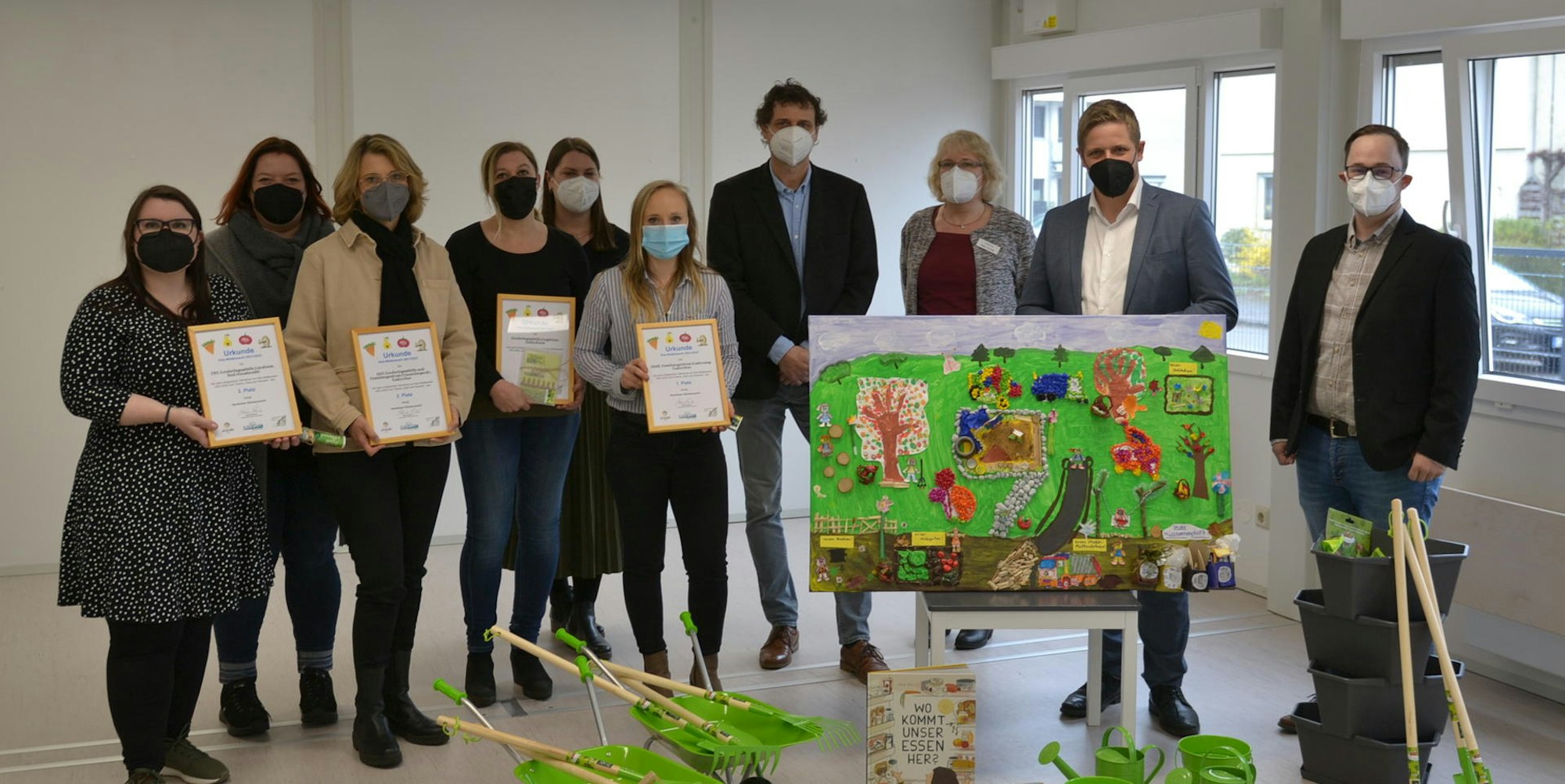 Bis zu ihrem Umzug in einen Modulbau an der Paul-Keller-Straße waren die Kinder des städtischen Familienzentrums Kiefernweg aus Euskirchen auf drei Kindertagesstätten aufgeteilt, da das eigene Gebäude stark von der Flutkatastrophe im Juli des vergangenen Jahres betroffen war. Der Nachhaltigkeits-Wettbewerb des Kreises sei die erste Gelegenheit für die Jungen und Mädchen gewesen, endlich wieder gemeinsam an einem Projekt zu arbeiten, berichtete die Leiterin Nicole Gehlen. „Durch die räumliche Trennung hatten die Kinder nur wenig Kontakt. Mit Bildern und Briefen konnten sie sich bei dem Wettbewerb über ihre Pläne für den Traumgarten austauschen.“
