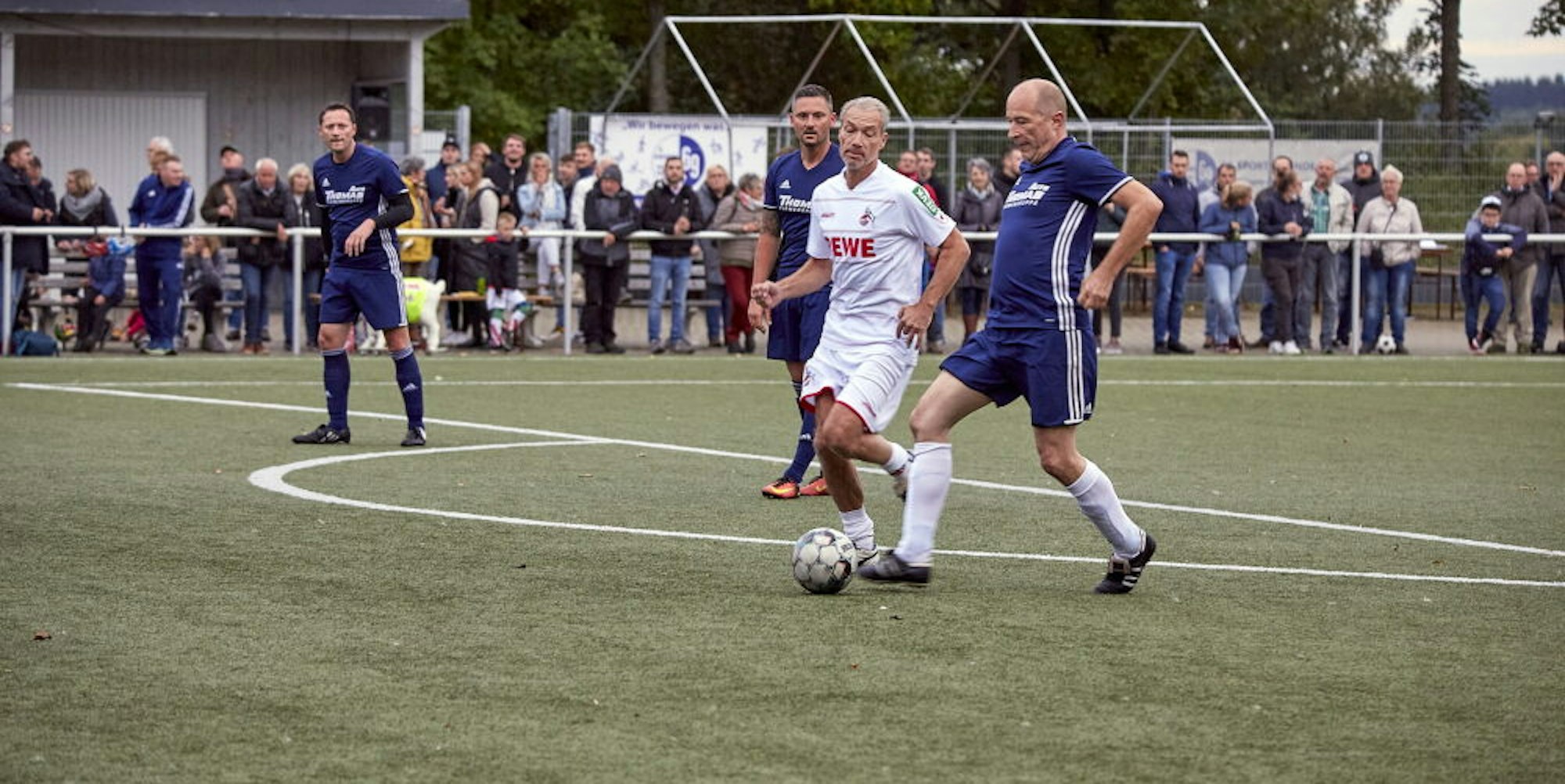 Nettersheim – Großer Andrang herrschte beim Auftritt der Traditionself des 1. FC Köln in Nettersheim: Rund 300 Zuschauer wollten sich die Chance nicht entgehen lassen, bekannte Sportler aus den goldenen Zeiten des Vereins live am Ball sehen zu können. Mit 3:1 gewannen die Altinternationalen der Geißböcke standesgemäß gegen eine Ü-40-Kreisauswahl.