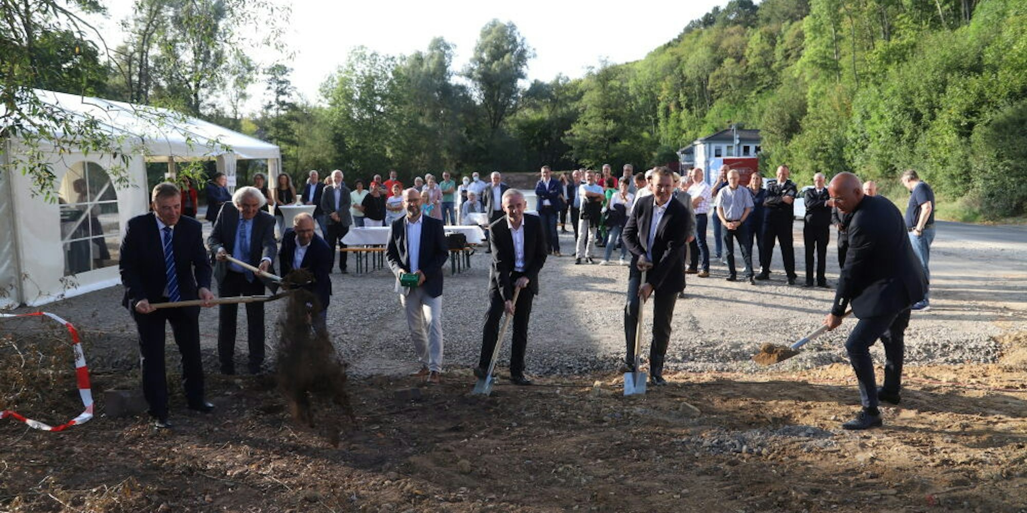 Steinigen Grund hatten sich Projektpartner und Bürgermeister für den symbolischen ersten Spatenstich ausgesucht.