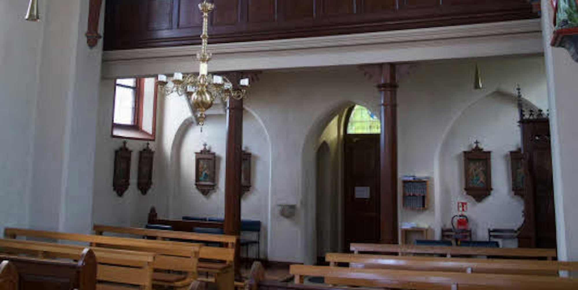 Die Orgel sieht von der Seite, von der aus die Gemeinde die Pfeifen sehen kann, weit schmucker aus als vom Platz des Organisten. Dort hat der Musiker eine dunkle Kiste vor sich mit einem Manual und gerade mal sieben Registern. Das ist wirklich alles, was zu sehen ist, so Bernd Kehr vom Kirchenvorstand: „Der Organist kann den Zelebranten nicht sehen, es muss ihm jemand von der Seite Bescheid sagen, wenn er spielen soll.“