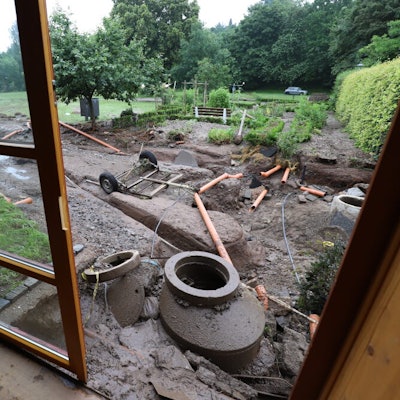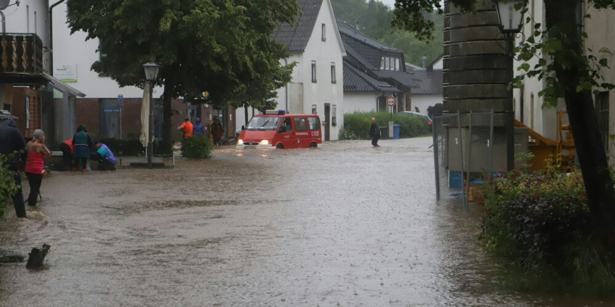 Einer Seenlandschaft glich die Bahnhofstraße in Nettersheim zu Beginn der Flutkatastrophe am 14. Juli.