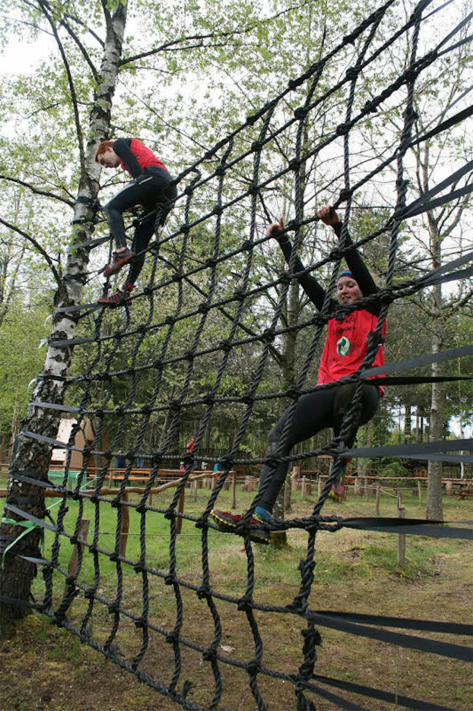 Reine Kraft reicht für diesen besonderen Leidensweg in Nettersheim jedenfalls nicht. Man muss dabei auch schnell sein. Und tatsächlich blieb eines der elf Duos beim Teamwettkampf auf der Strecke, die gespickt ist mit „Ninja-Böcken“, Seilen, Ringen, bis zu 3,50 Meter hohen Steilwänden, Kriechtunnel, Kletternetzen sowie natürlich einigen Schlammstrecken und Wasserlöchern, deutlich unter der vermuteten Zeit. Selbst die Zeitnehmer im 70-köpfigen Helferteam am „Arboretum“-Eröffnungstag konnten es kaum glauben.