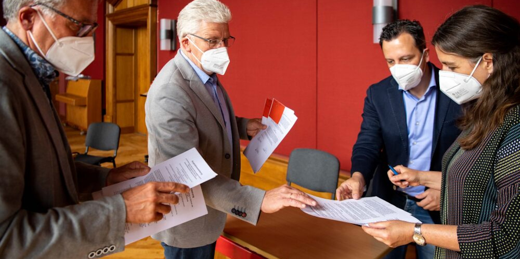 Der Verwaltungschef unterzeichnete mit Daniela Müller, Leiterin der Paul-Gerhardt-Schule, Gabriele Strobel-Pütz, Leiterin der Veybach-Schule in Wißkirchen, und Burkhart Horn einen Kooperationsvertrag. Horn ist Fachbereichsleiter Schule bei der Ratinger Interaktiv gGmbH. Diese wird ab Sommer die Trägerschaft des OGS-Angebots an den beiden Euskirchener Grundschulen übernehmen.