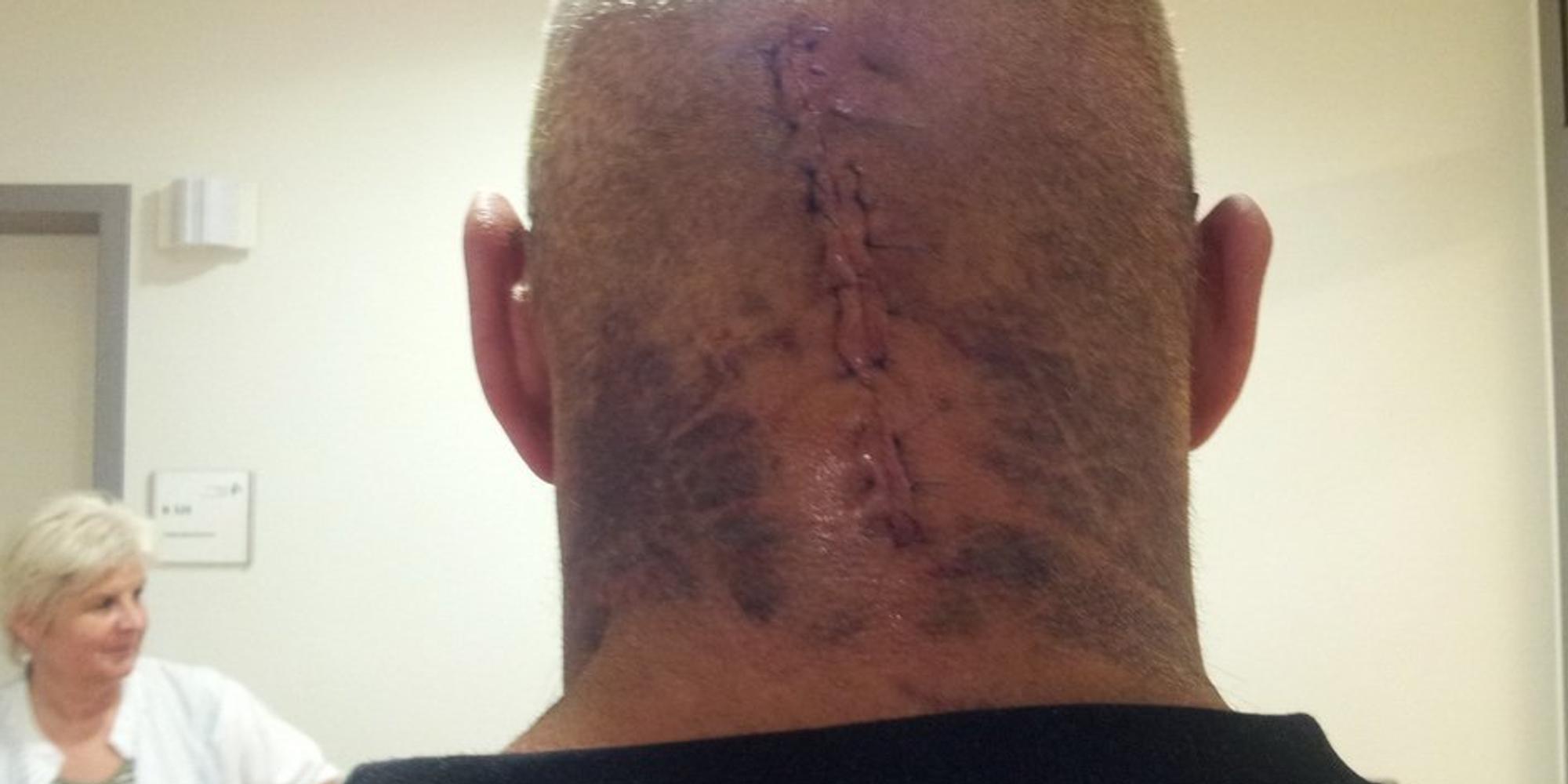 Ein Orthopäde in seiner Heimatstadt diagnostizierte einen dreifachen Genickbruch. Operieren lassen wollte er sich aber nur vom Wirbelsäulen-Spezialisten Dr. Martin Theis aus Emmerich. Weil der im Urlaub war, wartete Geulen fast eine Woche auf die Operation. Eine mit drei Schrauben befestigte Metallplatte und weitere sechs Schrauben in den beiden gebrochenen Wirbeln fixieren die Wirbelsäule nun. (tom)