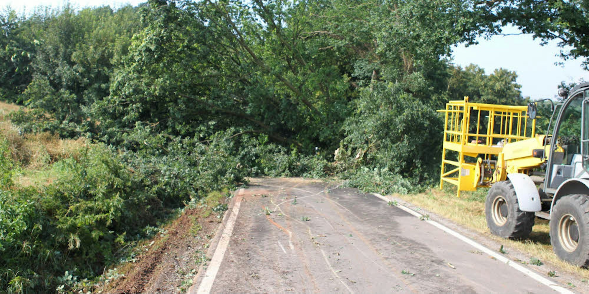 An der Kreisstraße 25 zwischen Hostel und Glehn wurden die Bäume so stark unterspült, dass sie auf die Straße fielen. Darunter auch eine 120 Jahre alte Linde, die gestern Vormittag von Mitarbeitern des Kreisbauhofes beseitigt wurde. „Auch die Straße wurde unterspült. Es kam zu einem Erdrutsch. Sie ist keinesfalls befahrbar“, erklärte Schmitz. Er äußerte am Freitag die Vermutung, dass die Straße ein paar Monate gesperrt bleiben muss, da dort eine größere Baumaßnahme anstehen dürfte.