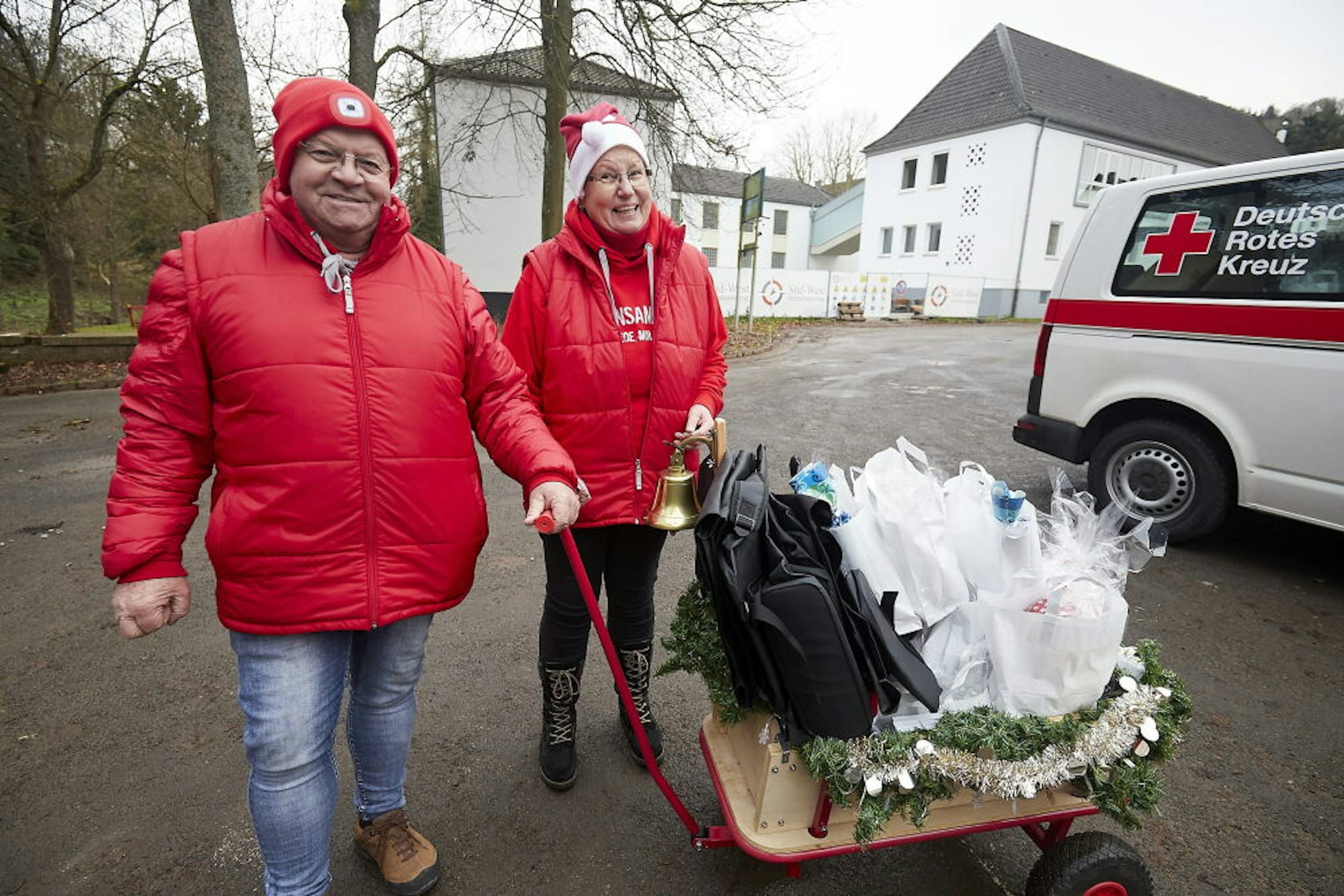 Am Sonntag, 5. September, als das Versorgungszelt am Marienplatz aufgegeben wurde, sei ihm die Idee gekommen, erzählte Hans Mießeler. Über viele Wochen hatte das Ehepaar in dem Versorgungszelt des Deutschen Roten Kreuzes (DRK) geholfen, in dem die Bevölkerung in Gemünd mit Essen versorgt wurde. Am letzten Tag habe er einen der Bollerwagen gesehen, mit denen morgens den Menschen in Gemünd Kaffee und Brötchen gebracht wurde. Da habe er sich vorgestellt, wie schön es wäre, diesen Menschen an Weihnachten ein Geschenk zu bringen. „Doch ich habe nicht damit gerechnet, dass die Aktion so ausarten würde“, gestand er schmunzelnd.