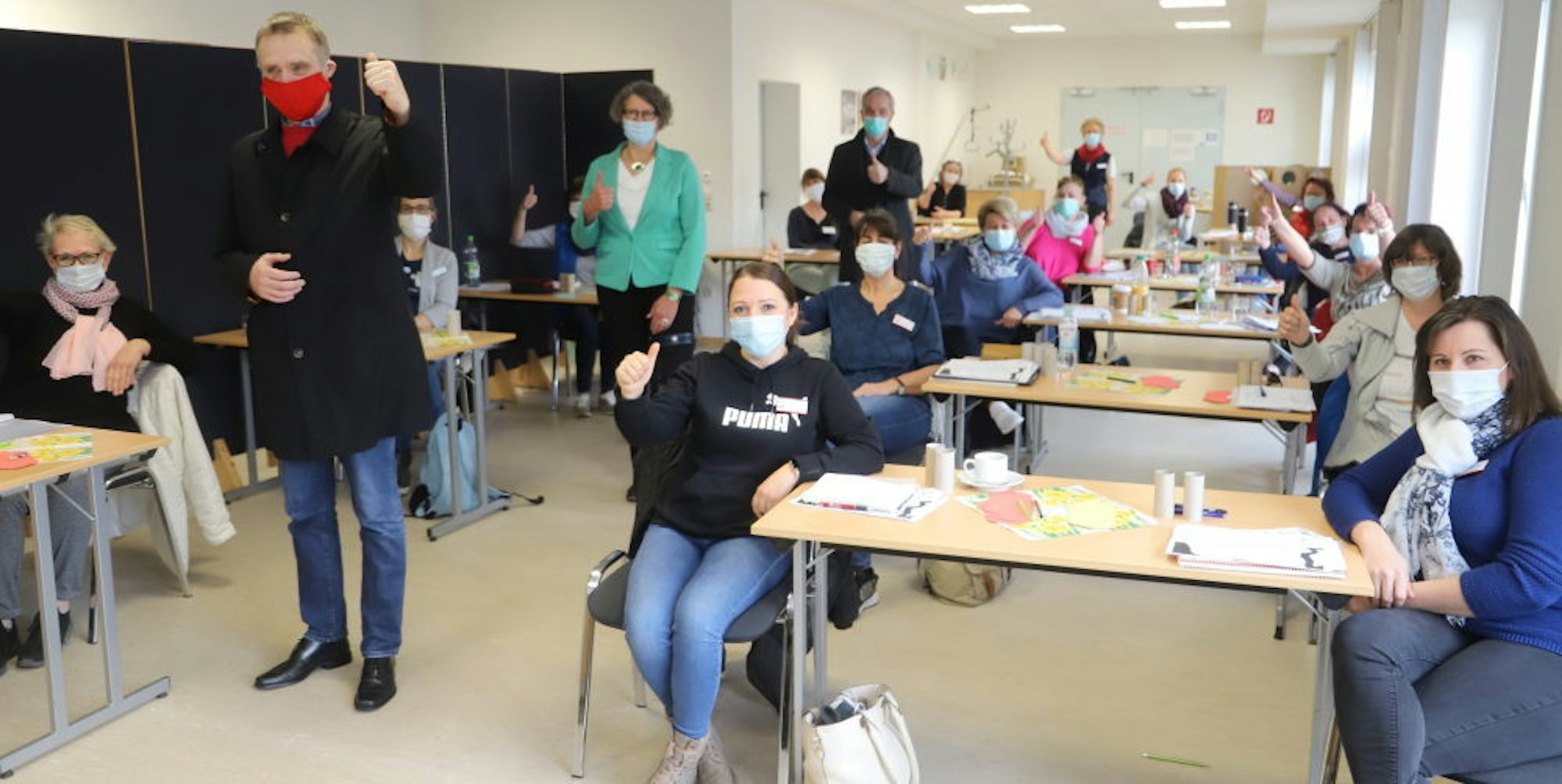 „Notfallpflegeergänzungskräfte“ heißen die Absolventen des Kurses im Anschluss. Potenzial für einen zweiten Kurs gebe es, so Nosbers. Im aktuellen Kurs kommen zehn der Teilnehmerinnen aus den Reihen der Caritas, sieben von EvA. Das diene auch der Sicherung der Arbeitsplätze, so Schneider. „Dadurch, dass zum Beispiel durch Kurzarbeit viele Menschen zuhause sind, werden unsere Haushaltshilfen derzeit nicht mehr überall benötigt.“ Wenn die neu ausgebildeten Kräfte als Pflegehelfer eingesetzt würden, würden sie natürlich dementsprechend bezahlt. „Vielleicht können wir auch die Teilnehmer dazu inspirieren, die Ausbildung zur Pflegekraft zu absolvieren“, hofft Nosbers.