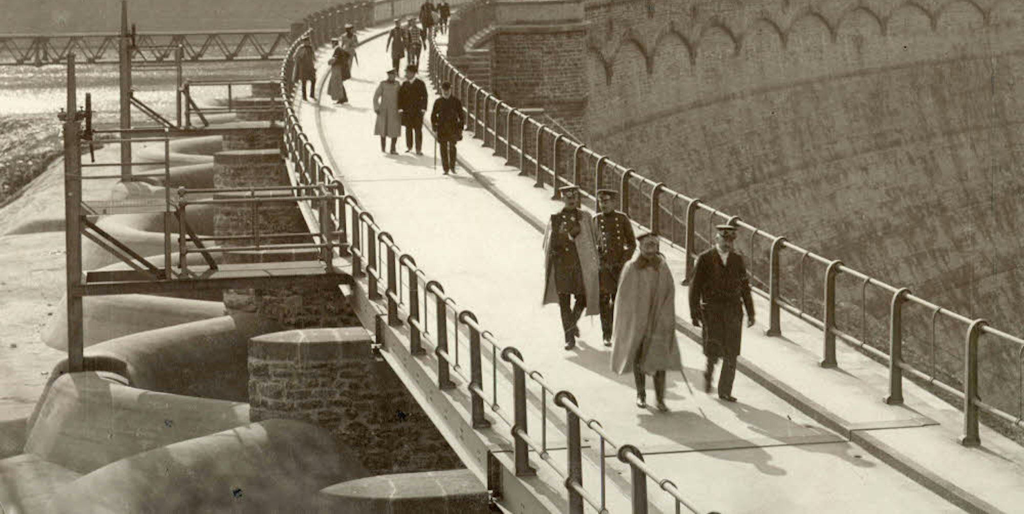 Der Kaiser und seine Entourage spazierten bei ihrer Kurzvisite auch über die Urft-Staumauer. Baurat Frentzen informierte über die Technik.