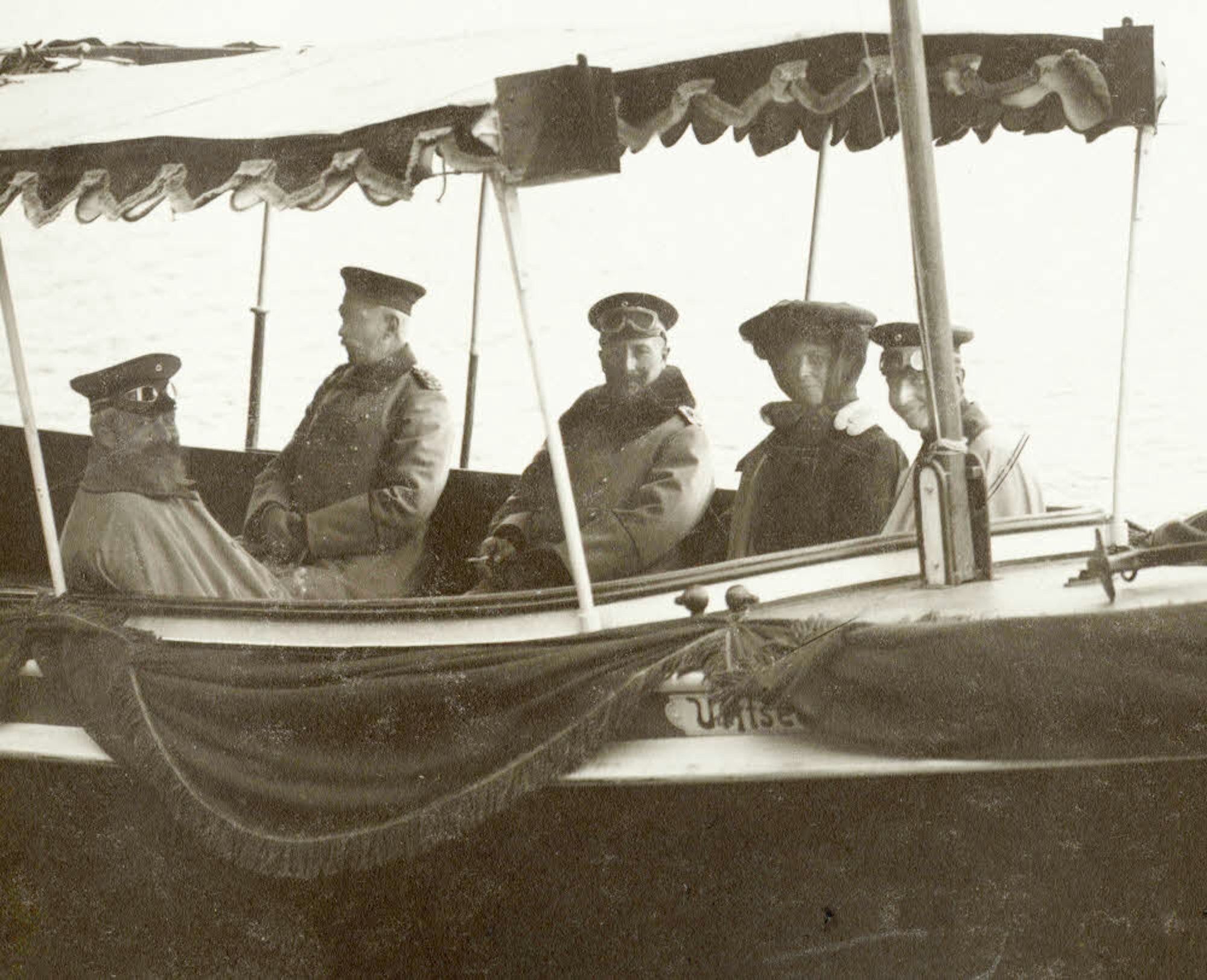 Mit der „Karoline“ schipperte die fürstliche Gesellschaft um Kaiser Wilhelm II. (M.) über den Urftsee in Richtung Gemünd.