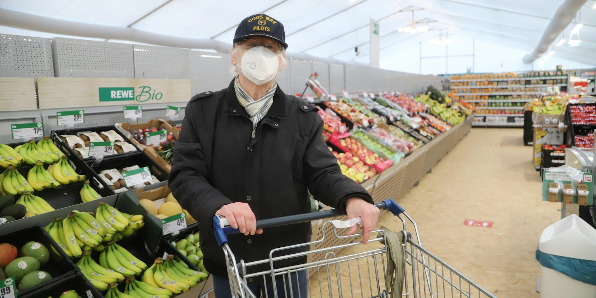 „Toll, wie das angenommen wird“, sagte Bürgermeister Ingo Pfennings. Die Idee zu dem Supermarkt im Zelt sei in einem Gespräch mit der Rewe-Einkaufszentrale entstanden. Innerhalb von vier Wochen sei die Notlösung umgesetzt worden: „Da ziehe ich den Hut vor.“