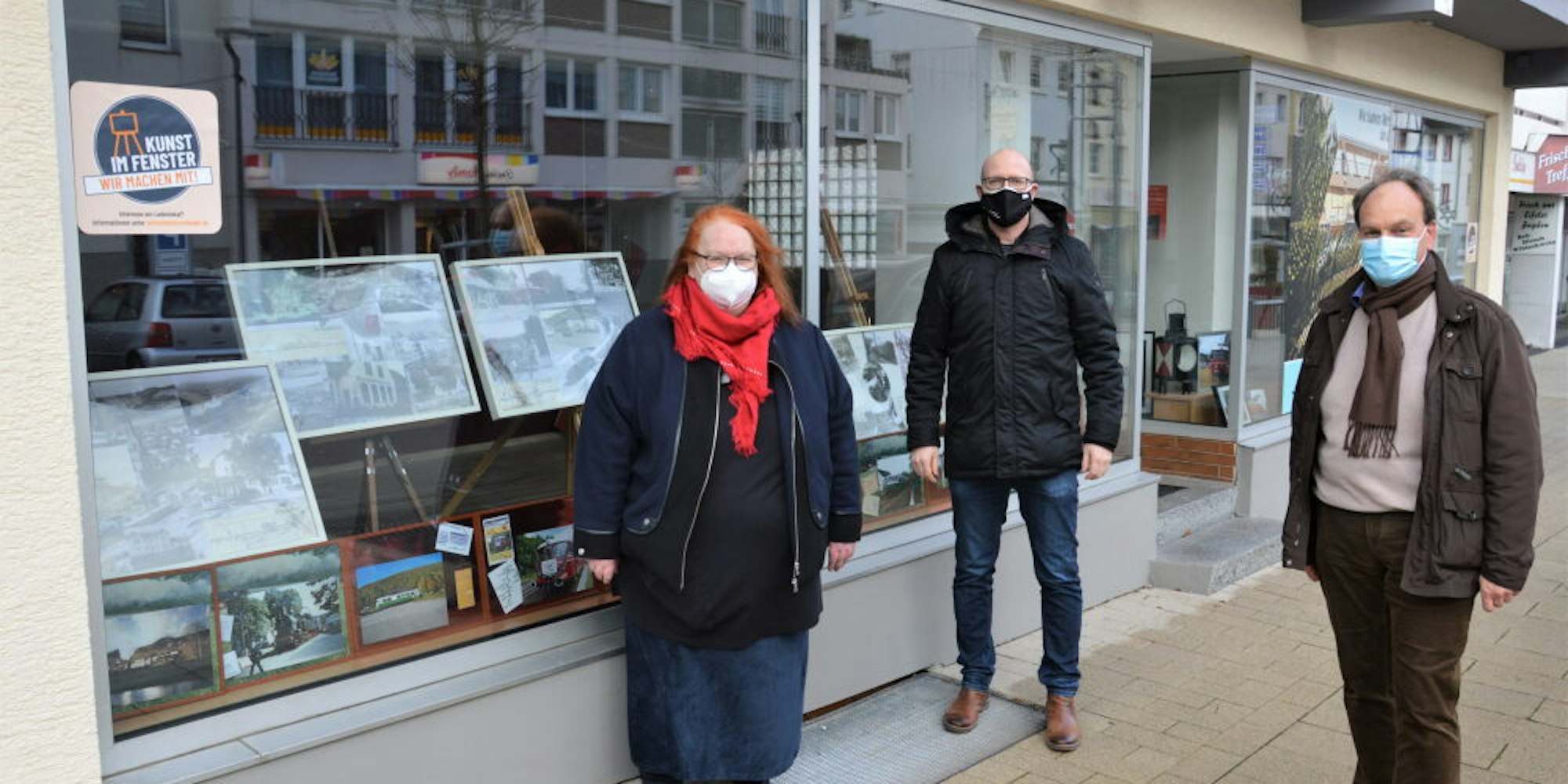 Stellten die Aktion „Kunst im Fenster“ vor: Marita Rauchberger (v.l.), Ingo Pfennings und Wolfgang Heller.