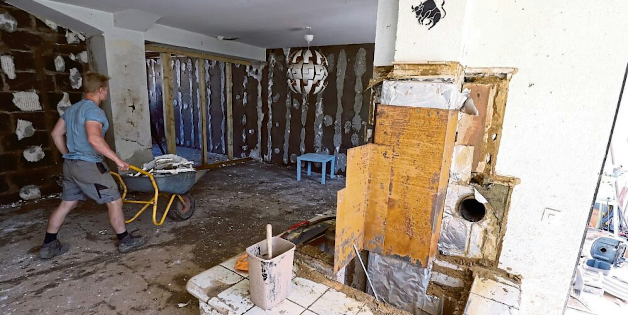 In ihrem Haus ist ein Trubel wie in einem Ameisenhaufen. Die Junggesellenvereine aus Vlatten und Malsbenden verwandeln das ehemalige Heim in einen Rohbau. Fliesen, Putz, alles muss herunter, damit die durchfeuchteten Wände eine Chance haben zu trocknen. Bautrockner? „In ganz NRW sind keine zu bekommen“, sagt Roß.