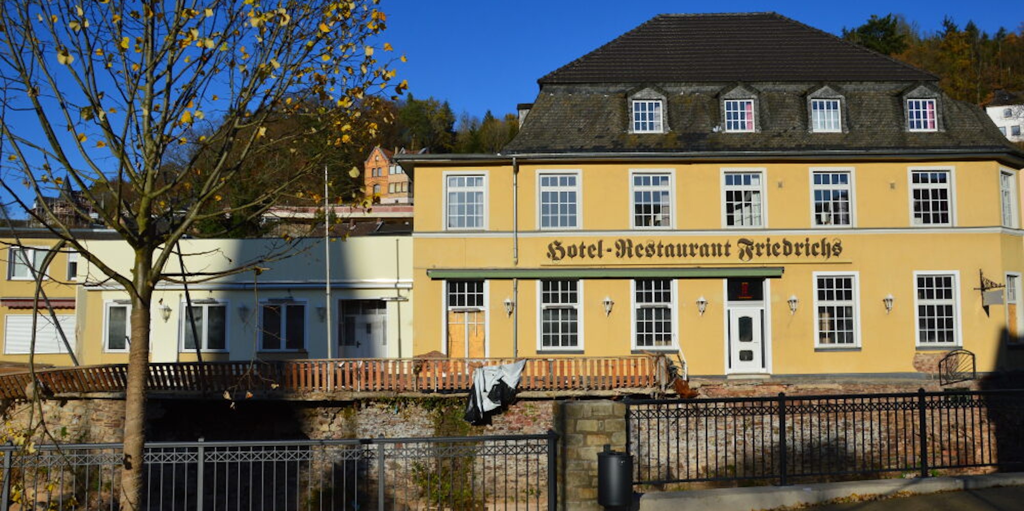 Schleiden-Gemünd – Das ist eine gute Nachricht für Gemünd: Das Hotel Friedrichs muss nicht abgerissen werden, nur der Anbau muss weichen. „Das Haupthaus hat einige Schäden, kann aber stehen bleiben“, sagt Besitzer Manfred Pesch am Dienstag. Es werde aber wohl mindestens zwei Jahre dauern, bis das Hotel wieder in Betrieb sei. Unterdessen plant die Stadt Schleiden, in Gemünd ein Zelt mit einem gastronomischen Angebot aufzustellen, das auch für Versammlungen genutzt werden kann.