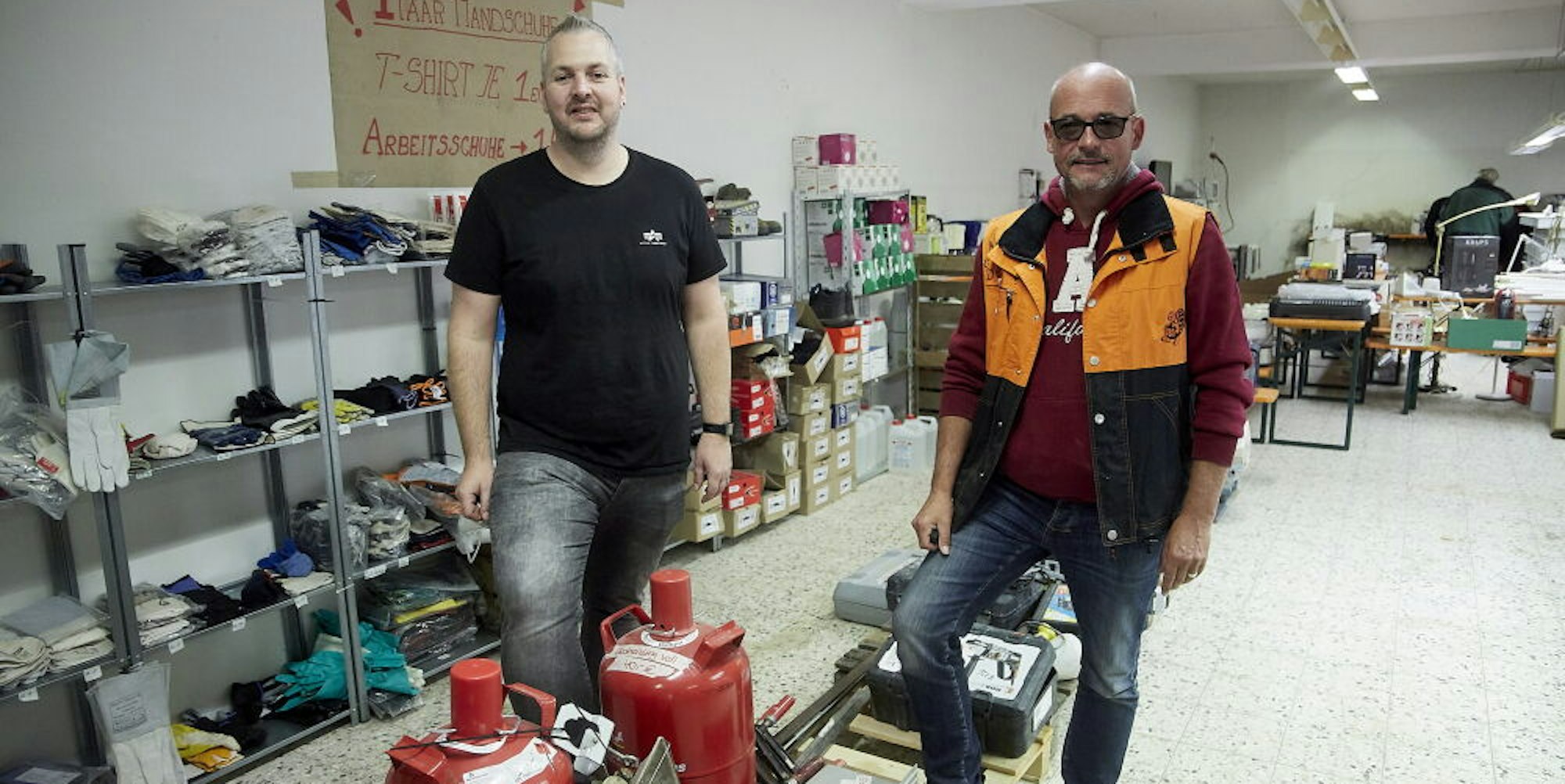 Gut angenommen wurde der Flohmarkt des Spendenlagers, um den sich Michael Stadler (l.) und Carlos Emonds kümmern.
