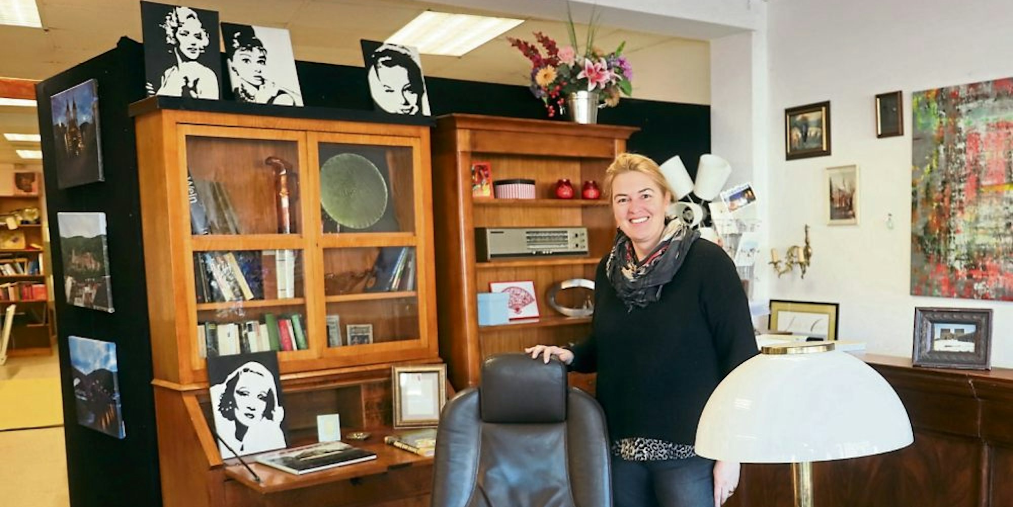 Obwohl sie bisher keine Werbung gemacht habe, sei schon richtig etwas los, erzählt sie. „Die Leute kommen aus Neugierde“, hat sie festgestellt. Eigentlich seien diese Räume eine Mischung aus Fundus und Secondhandladen, berichtet sie. Doch nicht alles sei zu verkaufen. Gerade die Alltagsgegenstände wie Lampen, Stühle, Tassen und Teller werden immer wieder gebraucht. „Das ist so üblich, dass bei Dreharbeiten Räumlichkeiten in der Umgebung als Produktionsbüro angemietet werden“, erklärt sie. Diese seien allerdings nur in den seltensten Fällen eingerichtet.