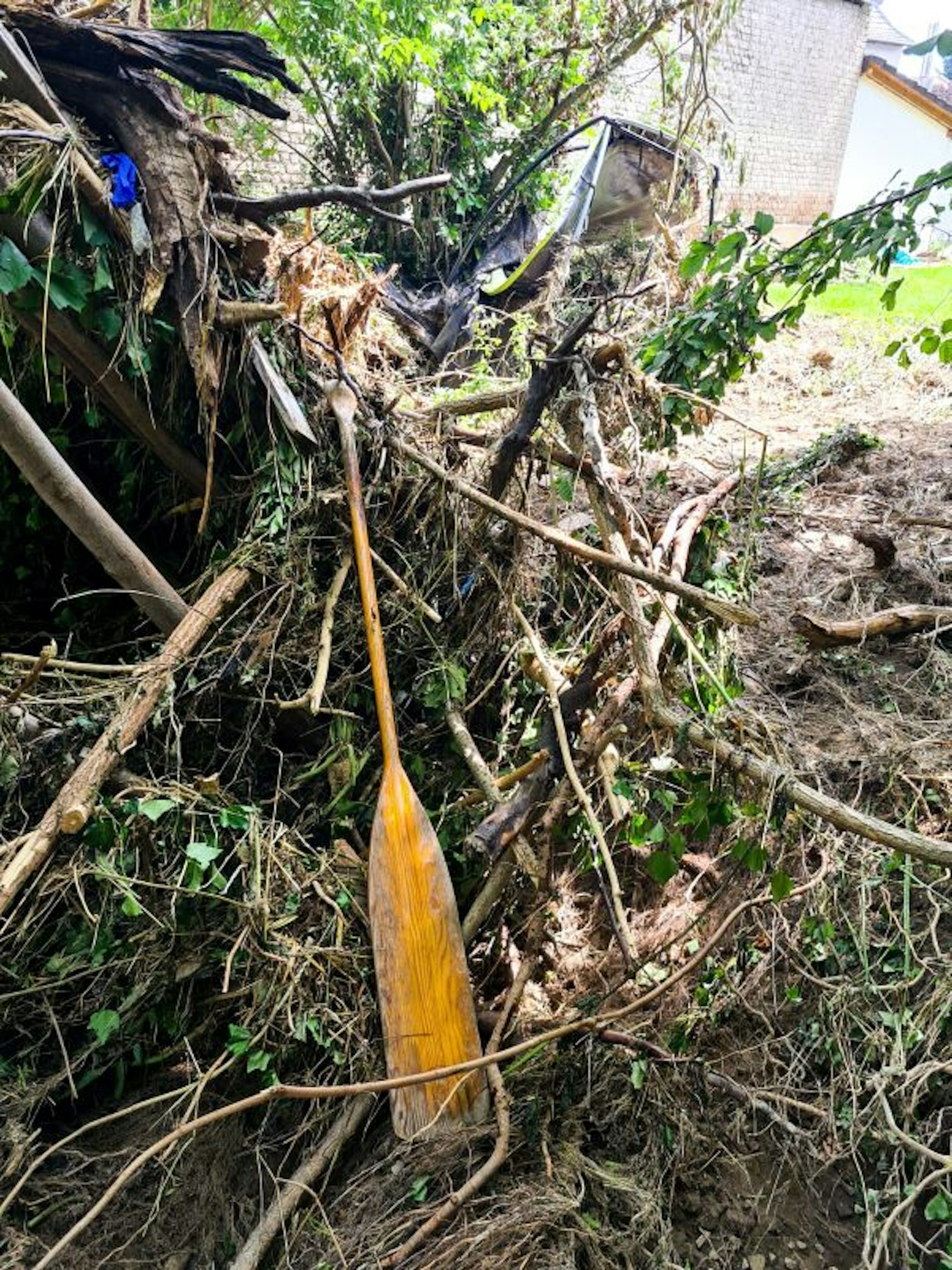 Zwischen Ästen und Sträuchern hatte sich das Paddel der DLRG-Crew verheddert. Dort entdeckte es Jonah Kehren auch wieder.