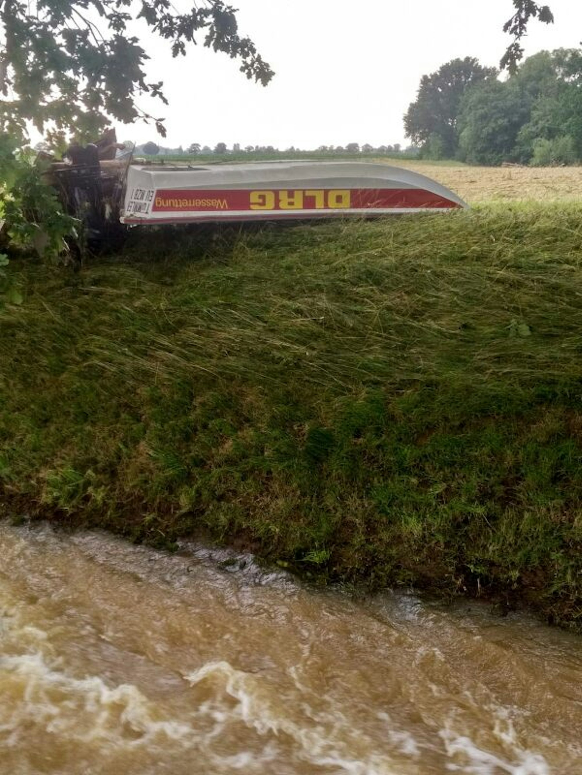 Doch die Rettungskräfte erlebten die wohl gefährlichsten Stunden ihres Lebens. „Bereits nach wenigen Metern war klar, dass das nicht einfach wird“, erinnert sich Kehren, Bootsführer der DLRG im Kreis Euskirchen. Und so war es dann auch. Die Strömung des Wassers war zu diesem Zeitpunkt schon so stark, dass das Boot abtrieb. Als dann auch noch der Außenborder kaputtging, konnte die Besatzung nur noch reagieren statt agieren.