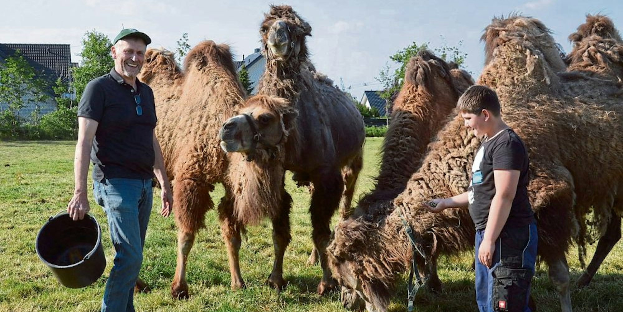 Trampeltiere, Wüstenschiffe mit zwei Höckern auf dem Rücken oder einfach Kamele: Mit einem Gewicht von 600 bis 800 Kilo sind die Tiere eine imposante Erscheinung. „Es ist nicht ganz einfach, sie zu halten. Viele Fragen sind offen, weil man sich in hiesigen Regionen mit ihnen nicht so gut auskennt. Man muss bedenken, dass auch die Tierärzte keine Erfahrung mit Kamelen haben“, erzählt Familienvater und Hofbetreiber Dieter Pierkes.