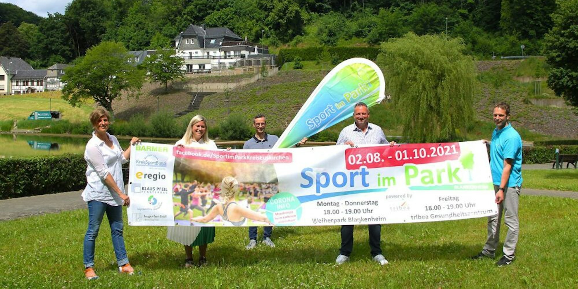 Unter den sieben Kommunen im Kreisgebiet, die bei „Sport im Park“ dabei sind, ist Blankenheim der Neuling. „Wir freuen uns, dass wir unseren Weiherpark auch damit für die Bürgerinnen und Bürger attraktiv machen können“, so Bürgermeisterin Jennifer Meuren. Die Programme werden von Trainern und Trainerinnen des Blankenheimer Gesundheitszentrums Tribea und des TSV Blankenheim geleitet.