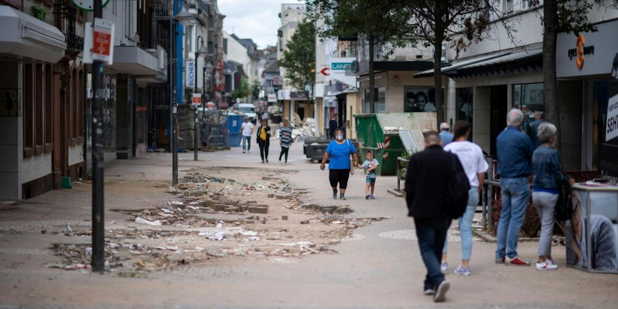 Die Euskirchener Fußgängerzone ist schwer getroffen von der Flutkatastrophe.