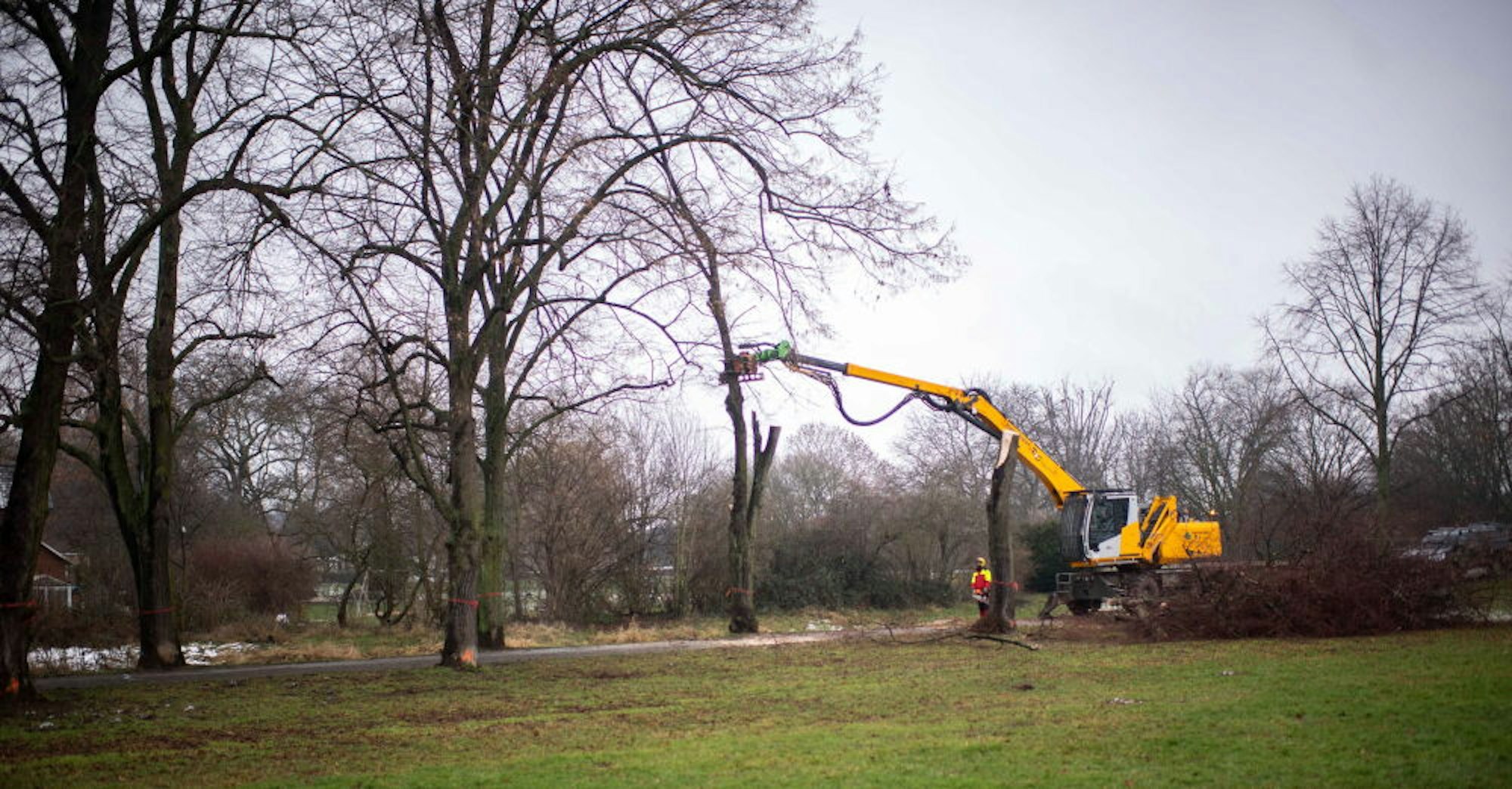 Die Fällarbeiten in der Erftaue haben begonnen. Zahlreiche Bäume entlang der Allee werden fachmännisch entnommen.