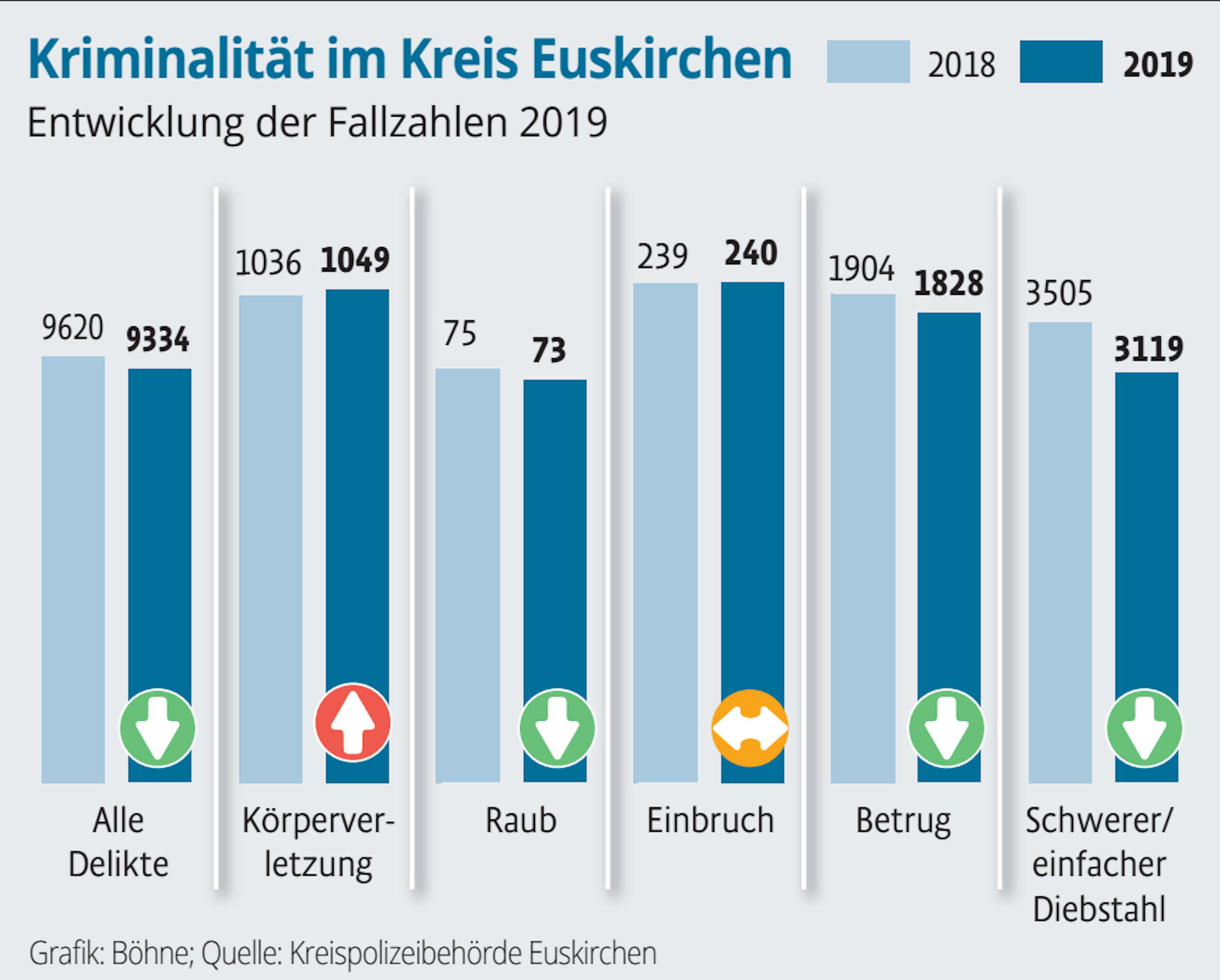 Statistik der Kriminalität 2019Brandserien und zwei Tötungsdelikte in Euskirchen