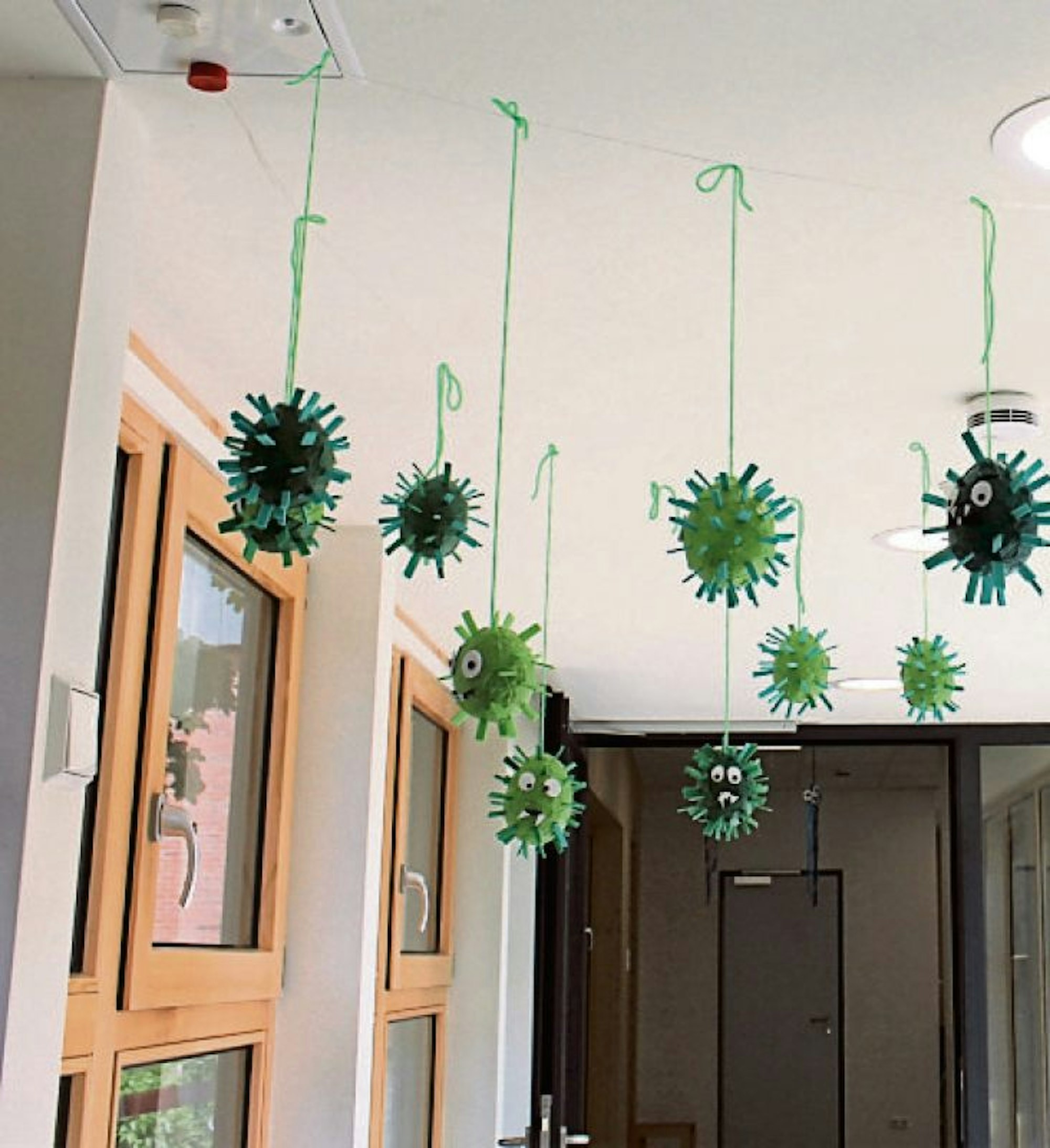 Gebastelte Coronaviren der Kita-Kinder in Lommersum.