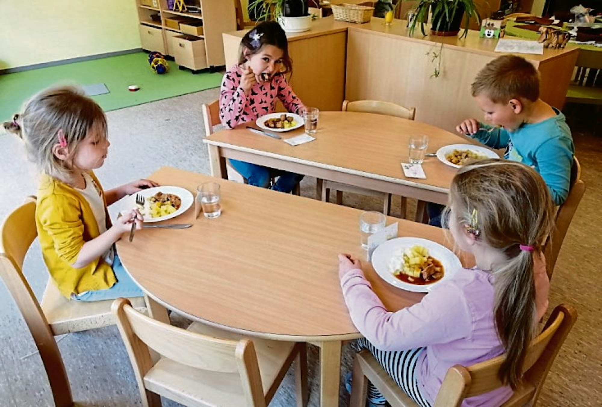 Mittagessen mit Abstand: Damit die Kita-Kinder sich in Groß-Vernich nicht zu nahe kommen, bleibt zwischen ihnen ein Platz frei.