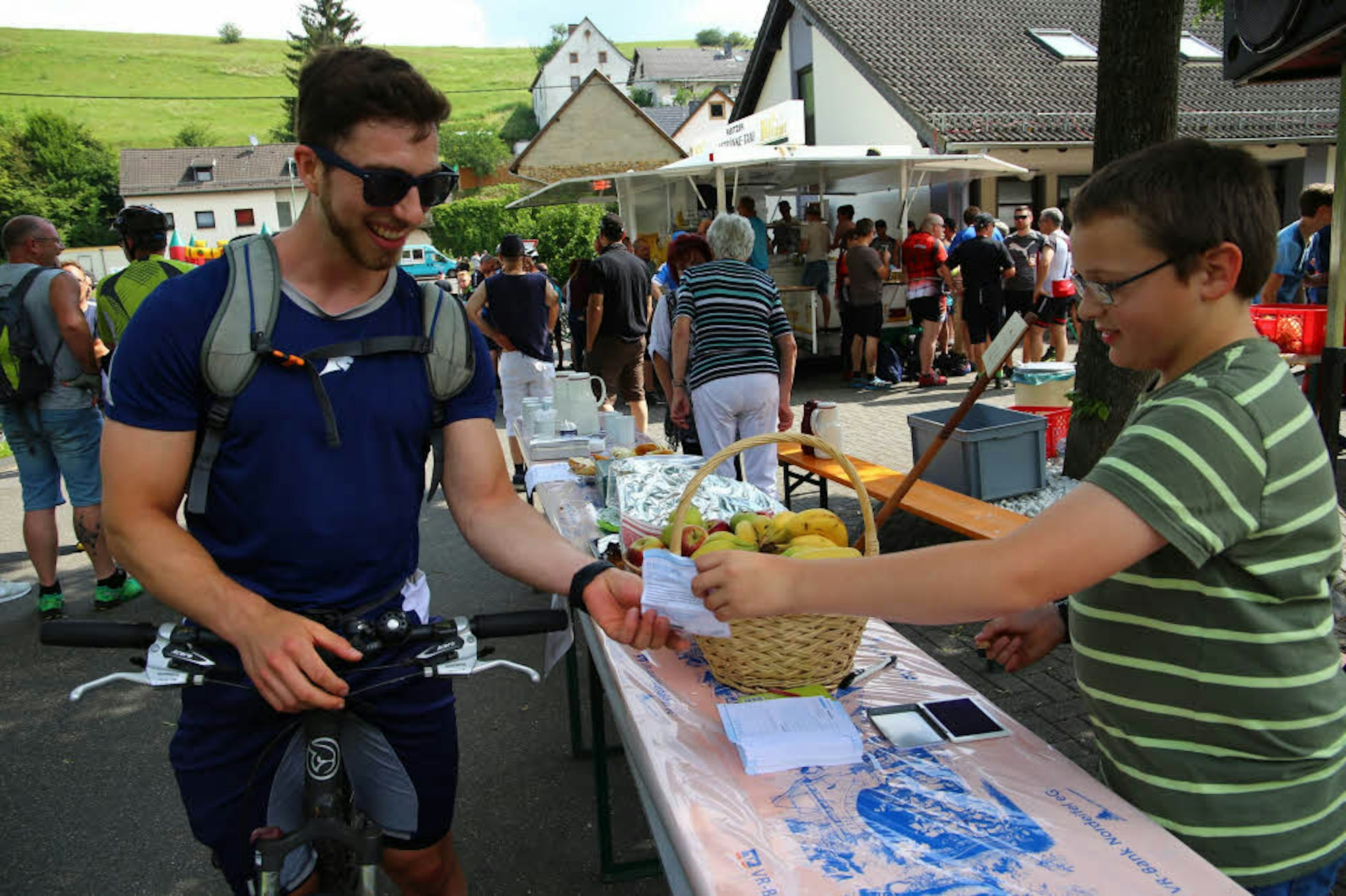 Auf der Bundesstraße trafen die erfahrenen Radwanderer auch auf diejenigen, die nicht so trainiert sind. „Ich fahre ansonsten nicht so viel“, sagte Philipp Surges, der verschwitzt eine ziemlich zerknitterte Stempelkarte aus der Tasche zog. Er war aus Ahrbrück nach Blankenheim gefahren und befand sich schon wieder auf dem Rückweg. „Zwei Stunden habe ich etwa bis Blankenheim gebraucht“, berichtete er. Auch wenn er nicht soviel Radfahren würde, habe er keine Angst vor dem Muskelkater: „Ich mache schließlich Bodybuilding.“