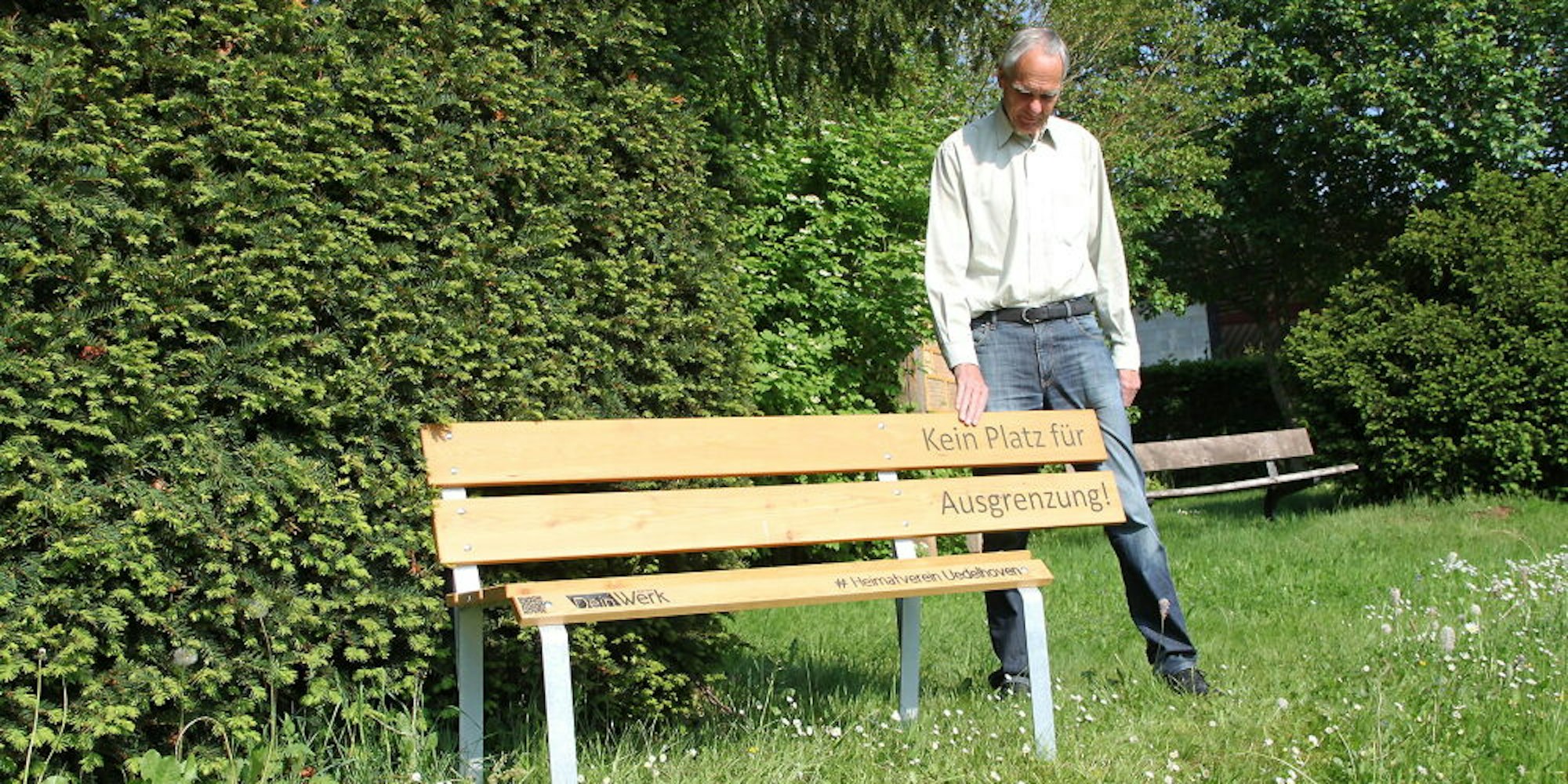 Am Samstag wird die „Bank gegen Ausgrenzung“ eingeweiht – hier mit Erwin Stein, Vorsitzender des Heimatvereins Uedelhoven.