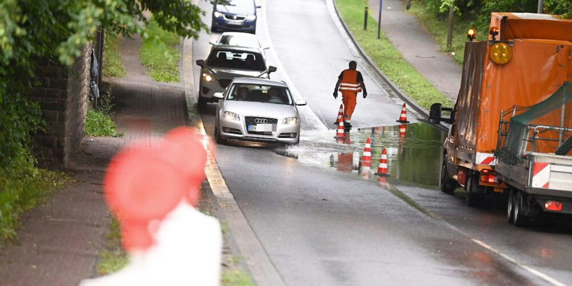 Aus Richtung Euskirchen kommend, war von 10.30 Uhr an für etwa eine Stunde die Fahrt nach Kuchenheim nicht möglich. An der Eisenbahn-Unterführung der L 194 war die rechte Spur von der Feuerwehr gesperrt worden, damit dort das Wasser abgepumpt werden konnte. Auch die Abbiegespur in Richtung Kuchenheim war gesperrt worden.