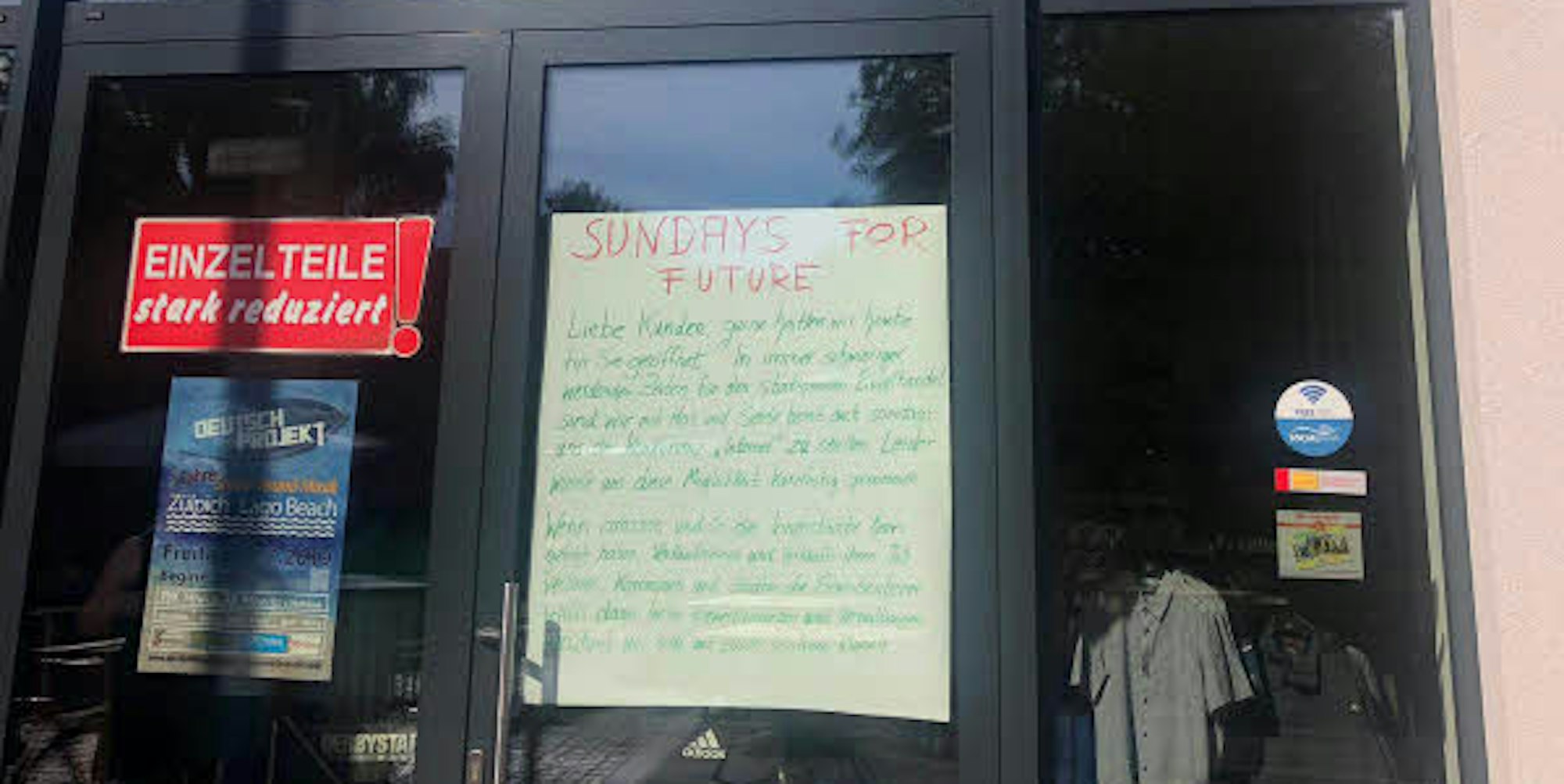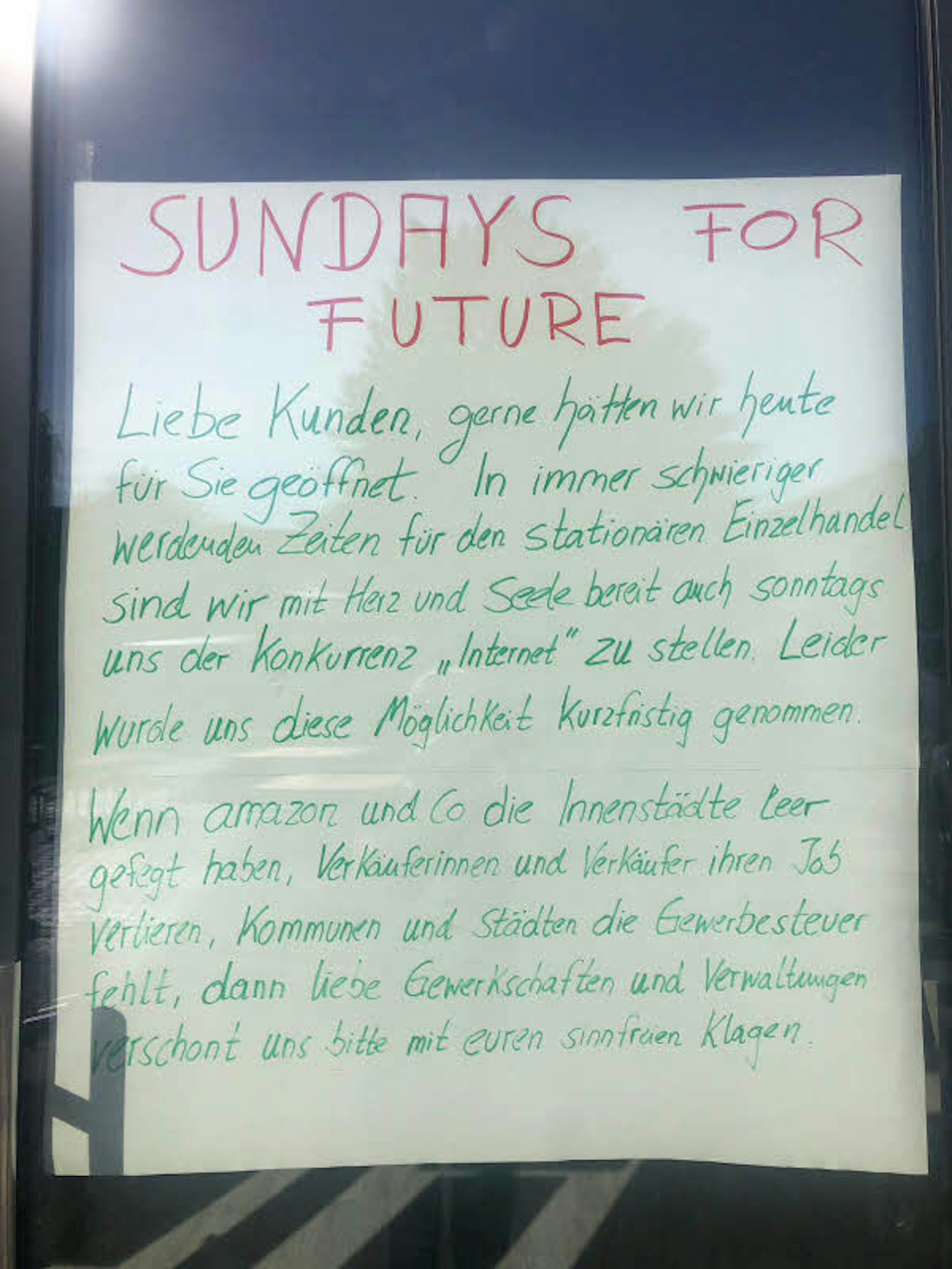 Sportgeschäft-Betreiber Wolfgang Fröhling fehlten nicht die Worte: Er hatte eigentlich seinen Laden öffnen wollen, doch eine Verdi-Klage verhinderte den verkaufsoffenen Sonntag.