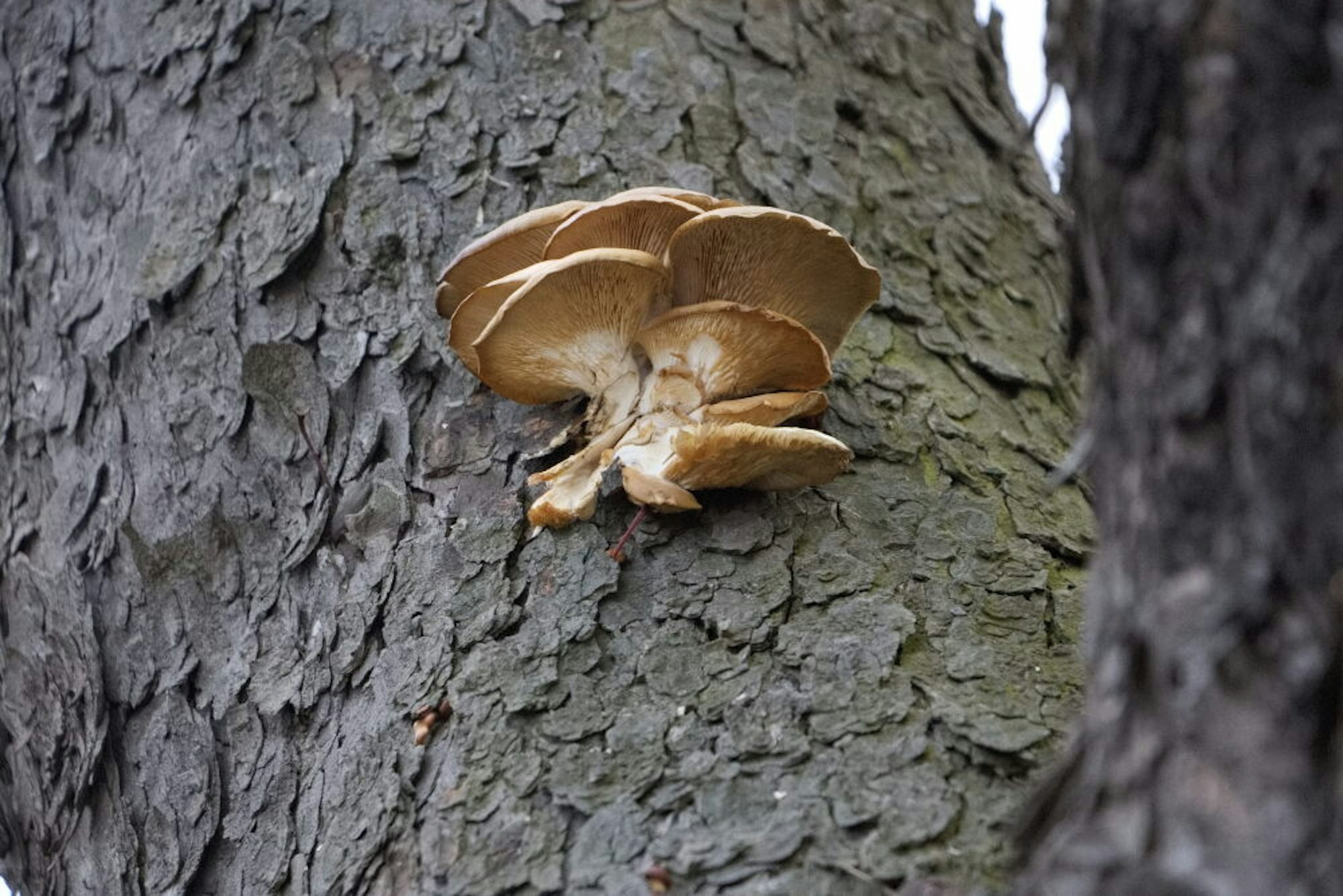 Die Kastanie am Bahnhof ist von einem Austernseitling besiedelt.