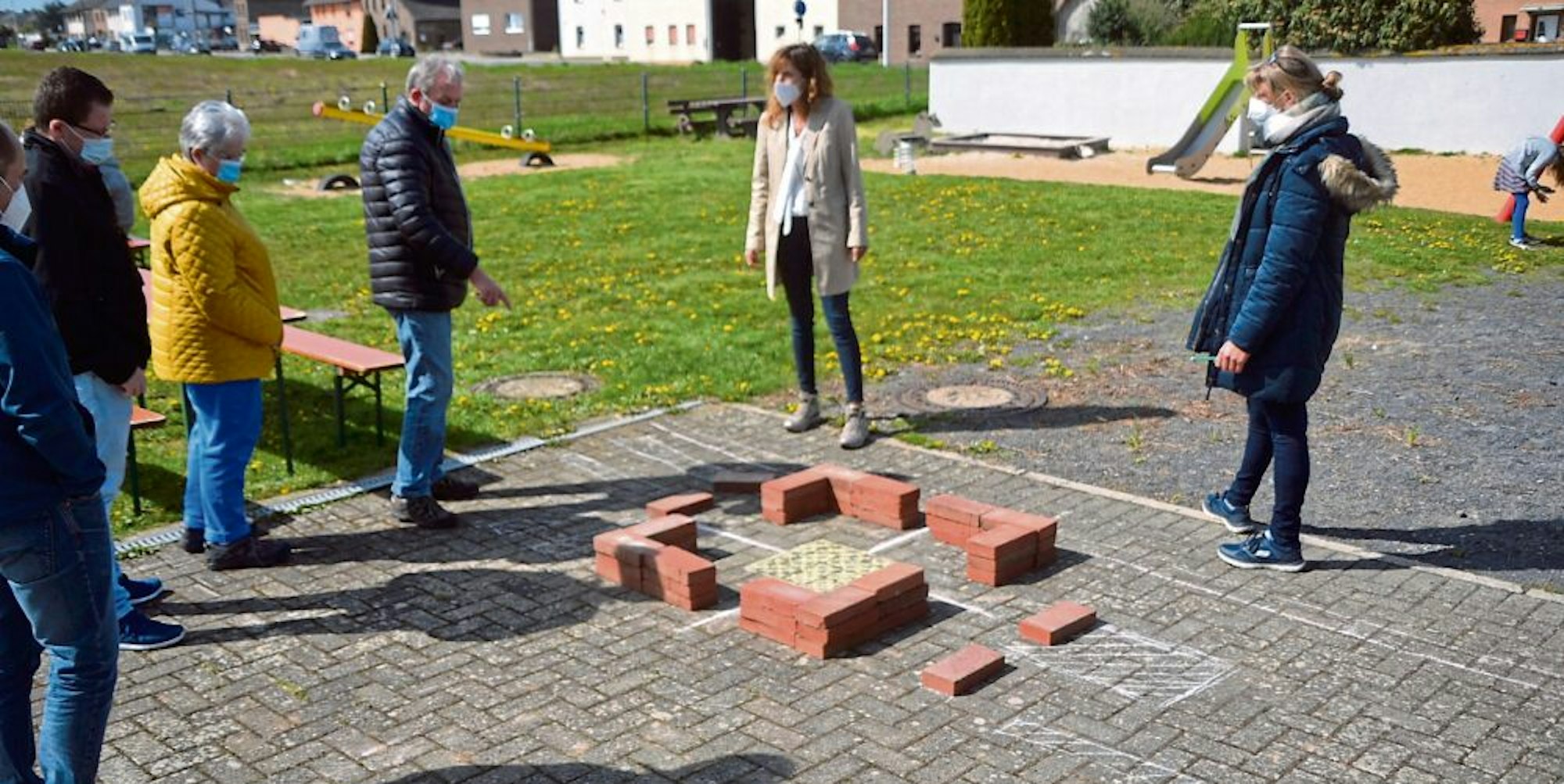 Um sich ein Bild der Größenverhältnisse machen zu können, hatten die Verantwortlichen nahe des Feuerwehrgerätehauses mit Absperrband die Fläche des Quartiersplatzes abgesteckt. Im Hinblick auf die bereits gesammelten kreativen Ideen wurde schnell deutlich, dass nicht für alles ausreichend Platz sein wird. Allein die Vorschläge für einen Bolz- und Basketballplatz würden schon einen Großteil der Fläche beanspruchen.